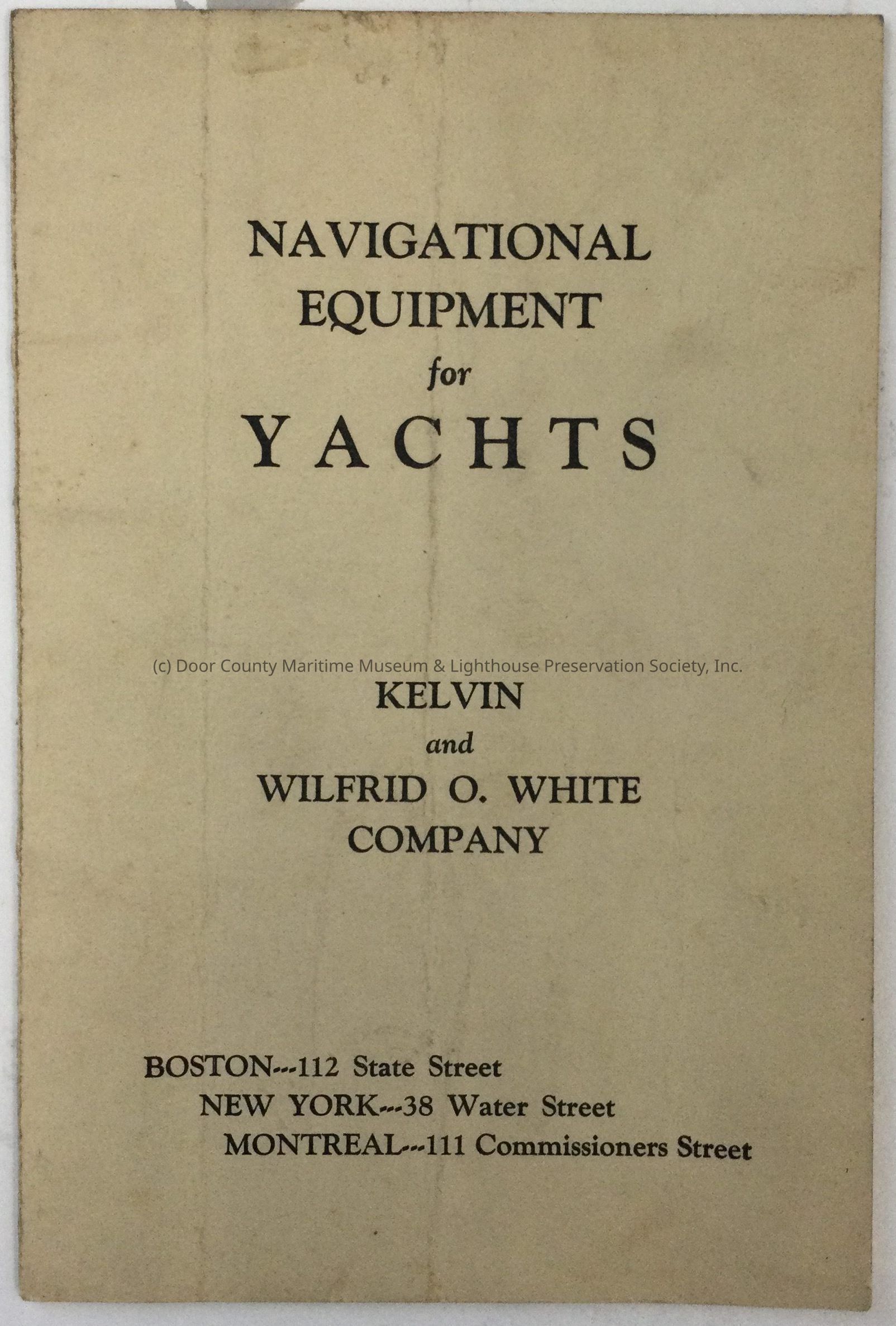 Brown booklet with black text. Kelvin and Wilfrid O. White Company Navigational Equipment for Yachts catalogLocation