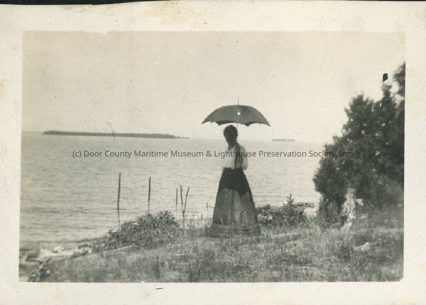 A woman identified as Nena on the shore at Fish Creek. Summer 1916