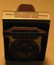 Brown varnished wood handle and base. Orange rubber stamp "R/V Oceanus 30th Anniversary of Delivery 28 October 2005"