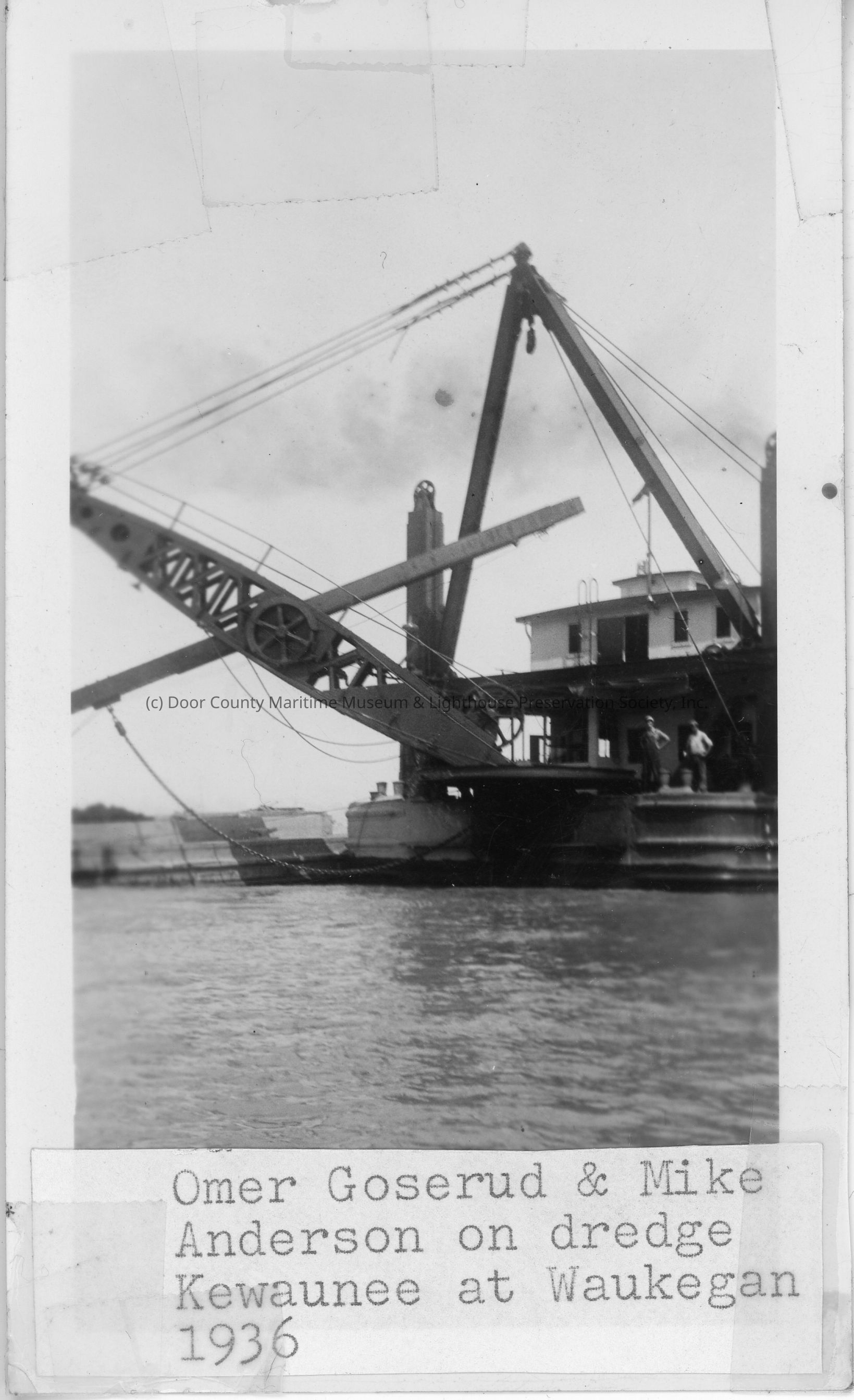Omer Goserud and Mike Anderson on dredge Kewaunee at Waukegan 1936