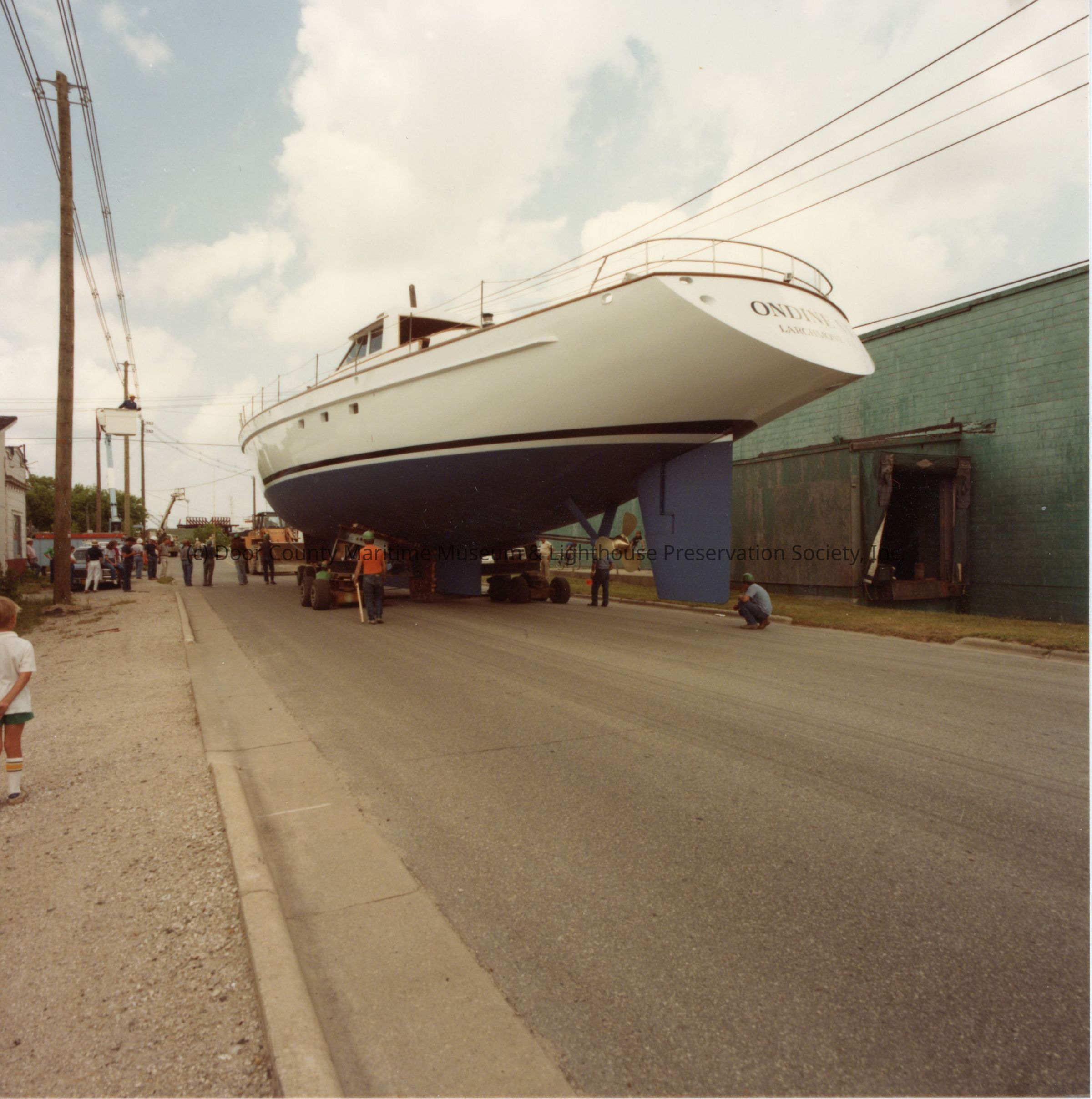 Ondine on transport on street to Bay Shipbuilding Co.