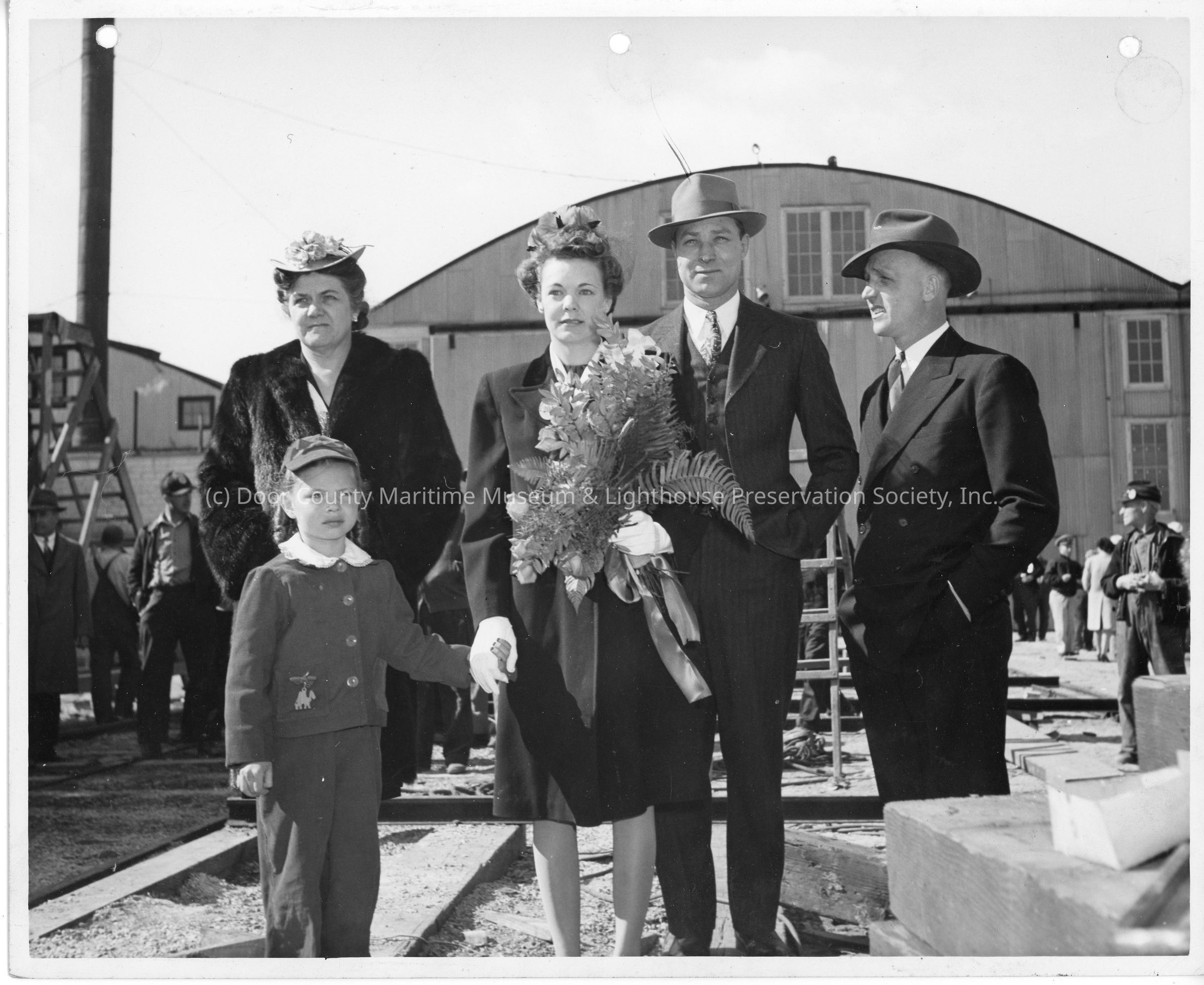 P-568 sponsor party posing for photo at Peterson Boat Works April 12, 1944