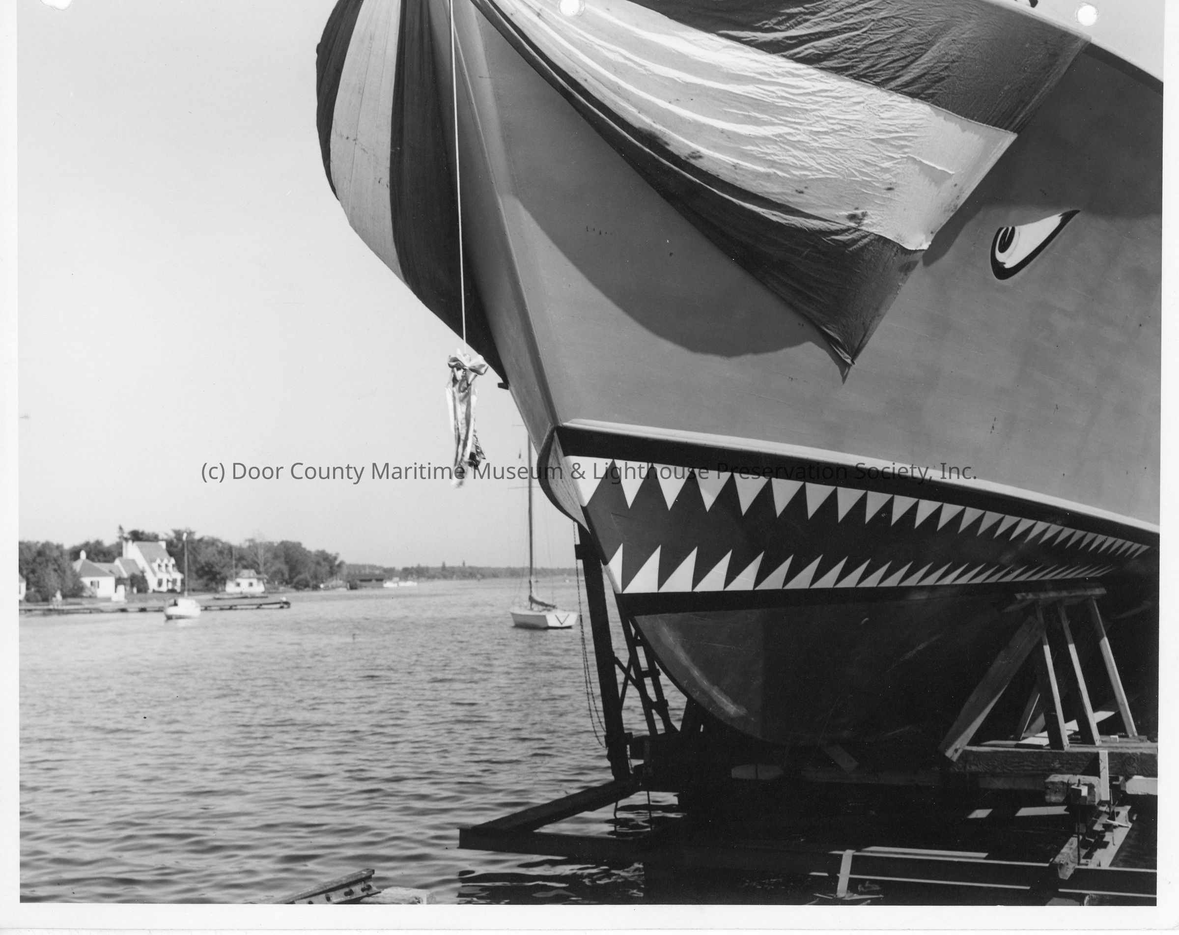 P-570 in cradle post-christening at Peterson Boat Works June 17, 1944