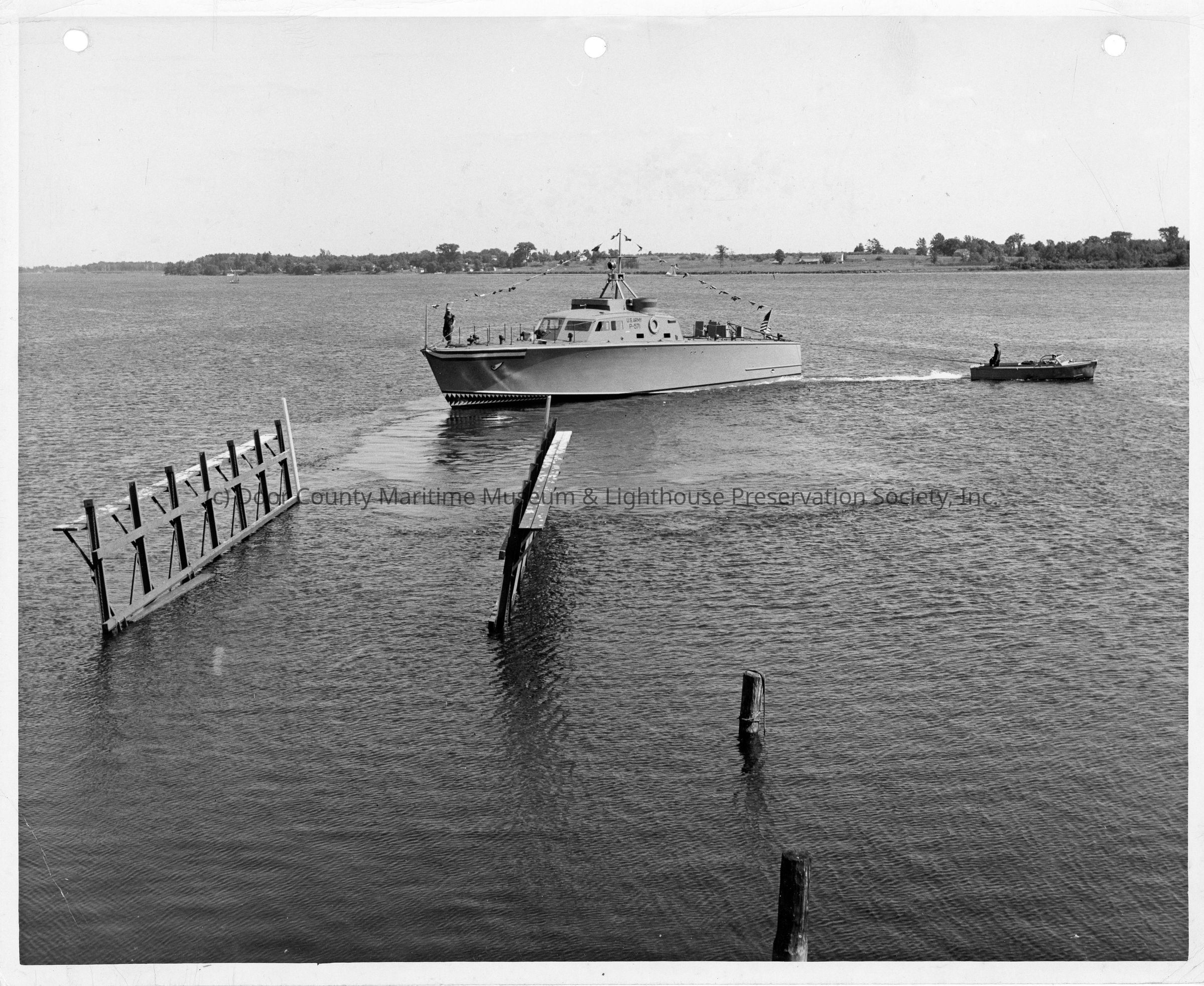 P-571 being towed into water post-launching at Peterson Boat Works July 15, 1944Entry/Object ID