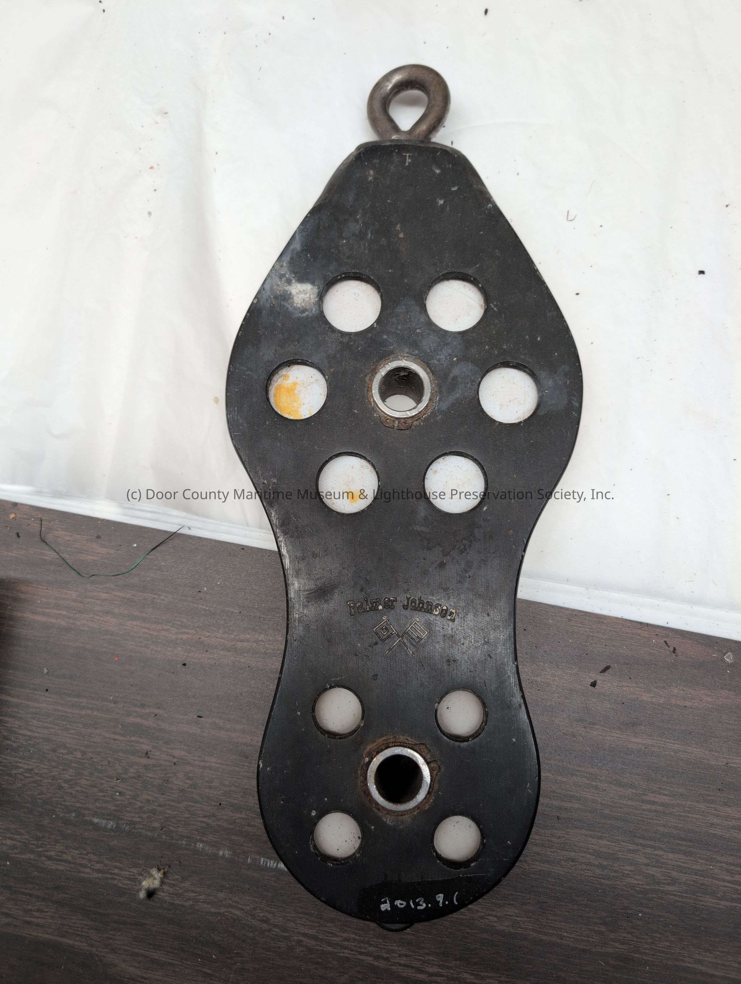 Black metal Palmer Johnson Logo White plactic discs between black metal