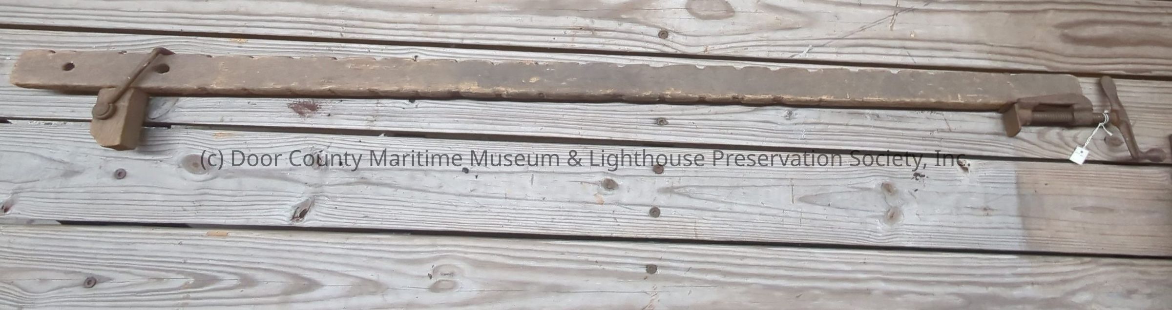 Brown metal threaded vise grip mounted to one end. Movable set block with metal hinged bracket. Hand Made
