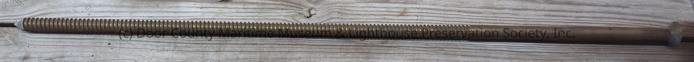 Dark brown color. 3/4 of shaft is threaded. head is round. End of shaft is pointed