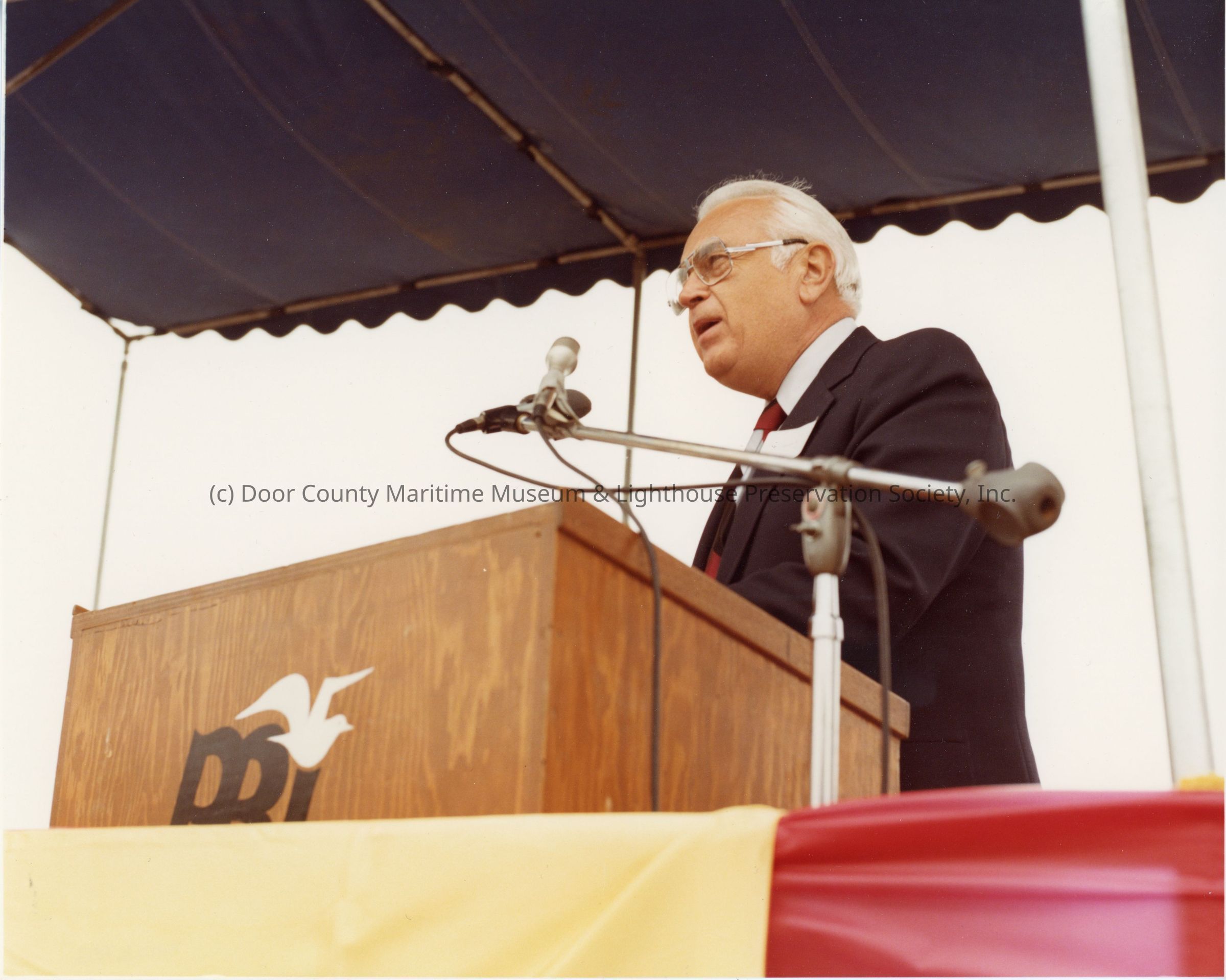 PBI man at podium at christening of Captain Frank MedinaEntry/Object ID