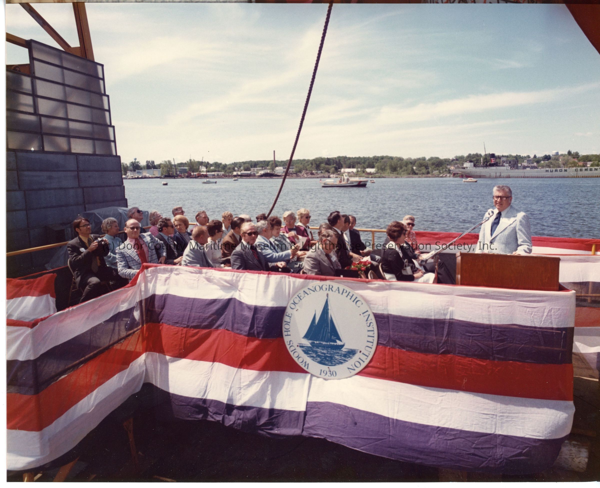 PBI ship Oceanus launch speaker's podium with peopleEntry/Object ID