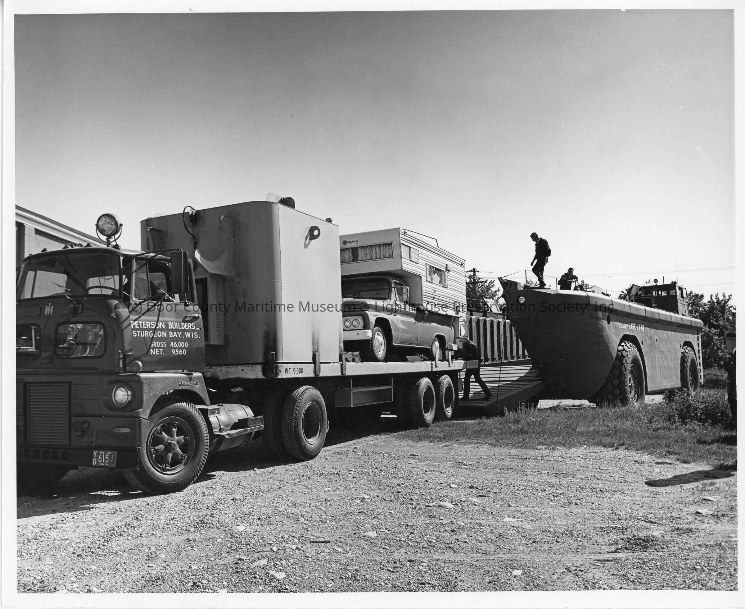 PBI truck loading truck and camper into US Army Larc LX49Entry/Object ID