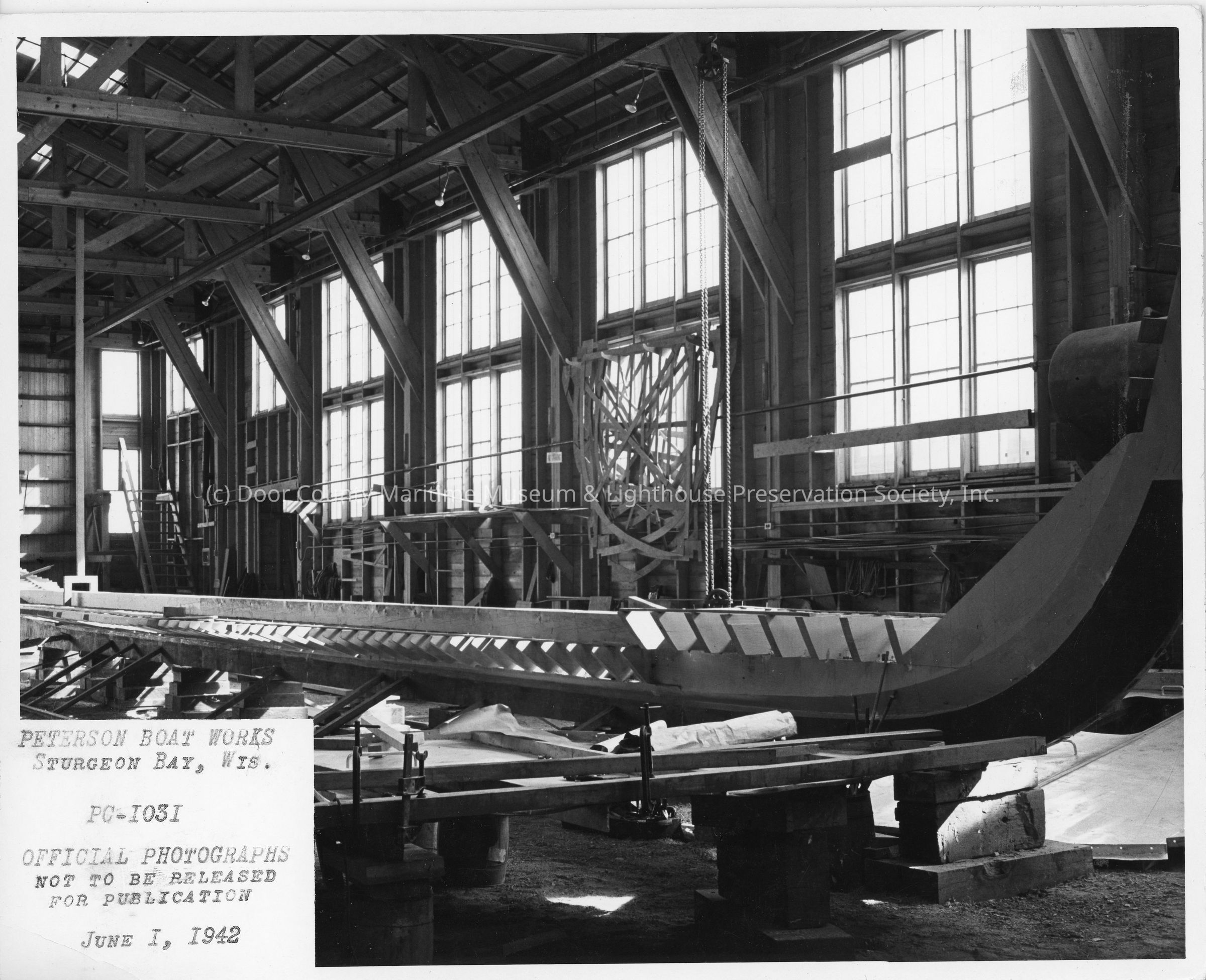 PC-1031 frame under construction at Peterson Boat Works June 1, 1942