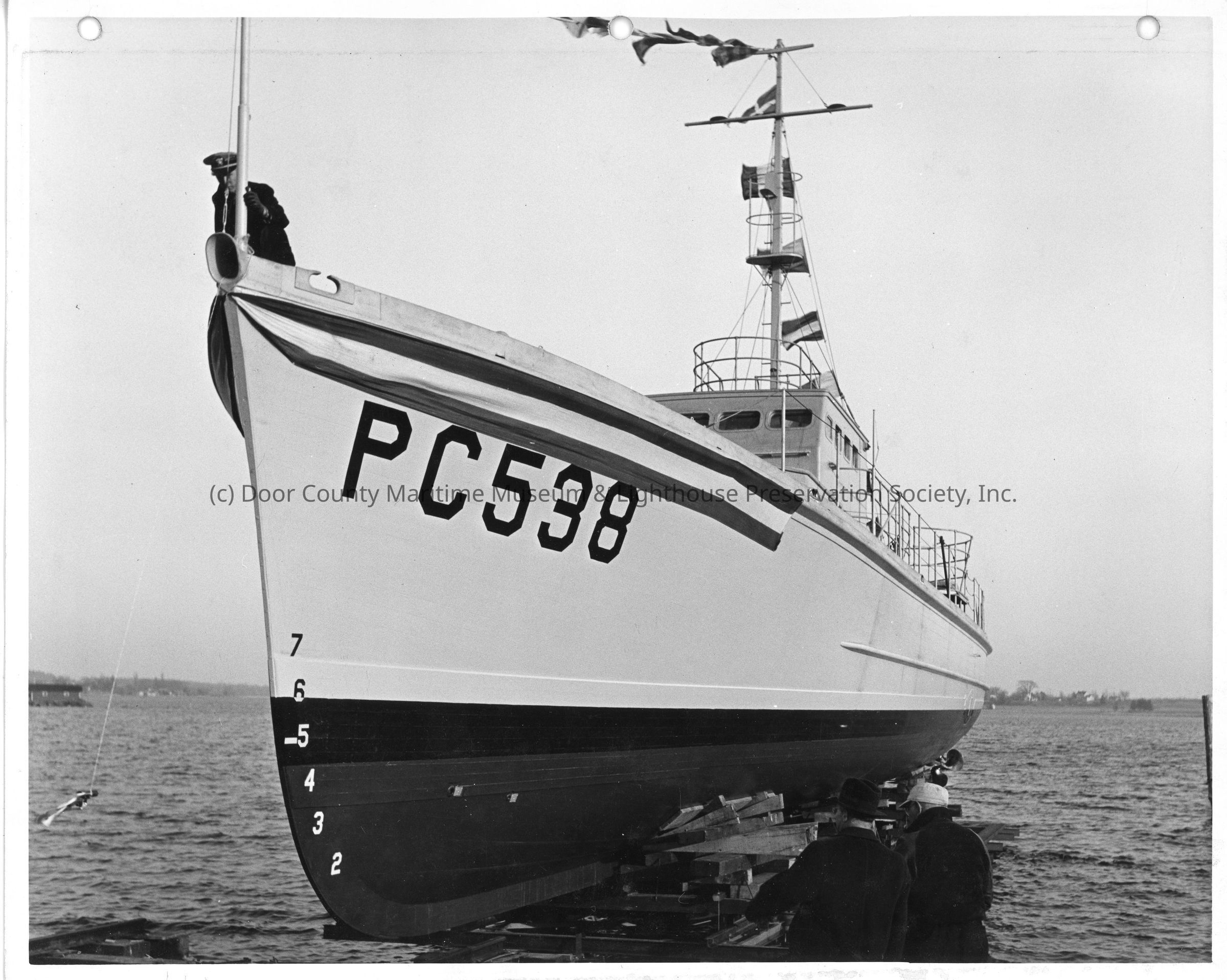 PC-538 post-christening at Peterson Boat Works April 1, 1942
