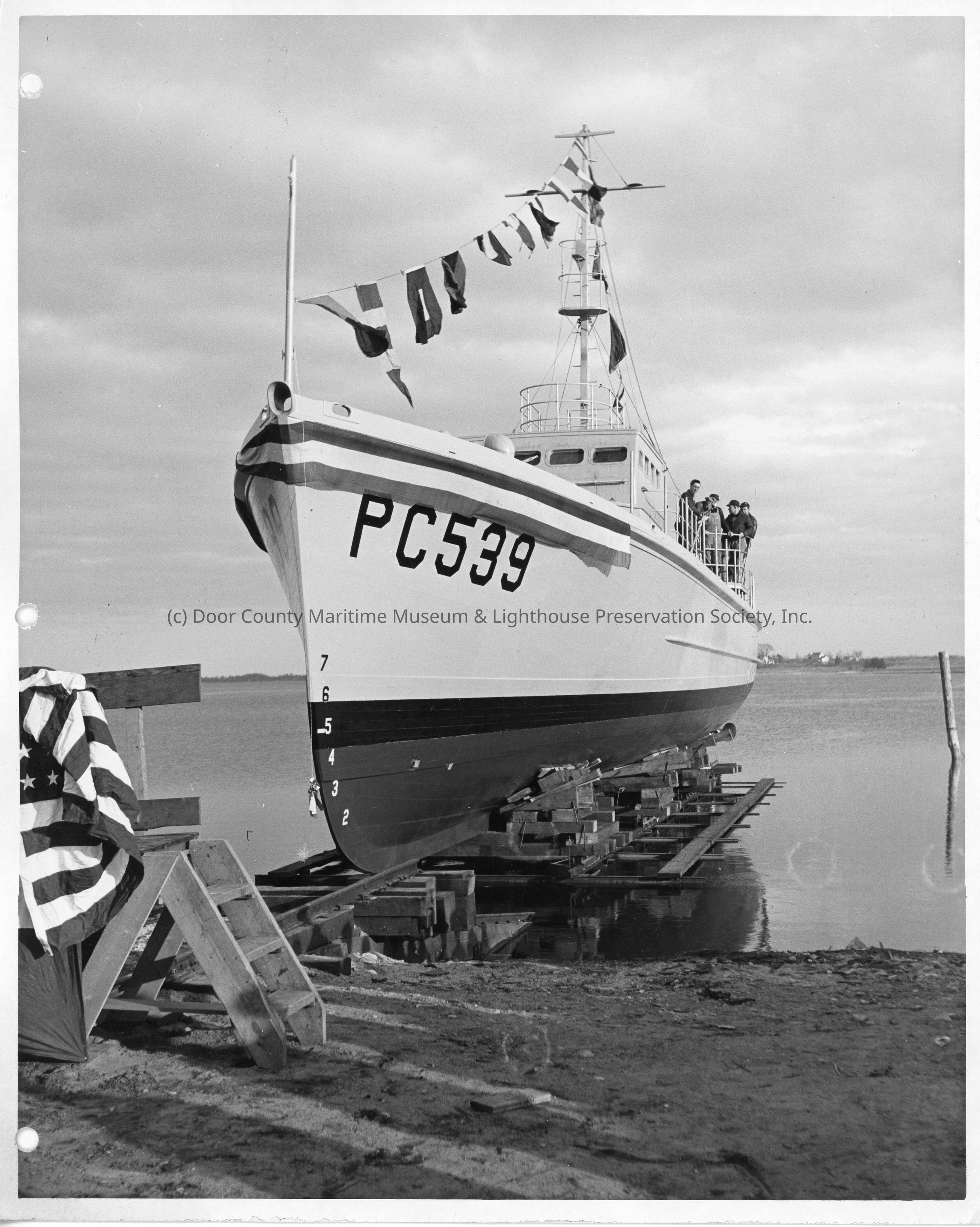 PC-539 post-christening at Peterson Boat Works April 7, 1942