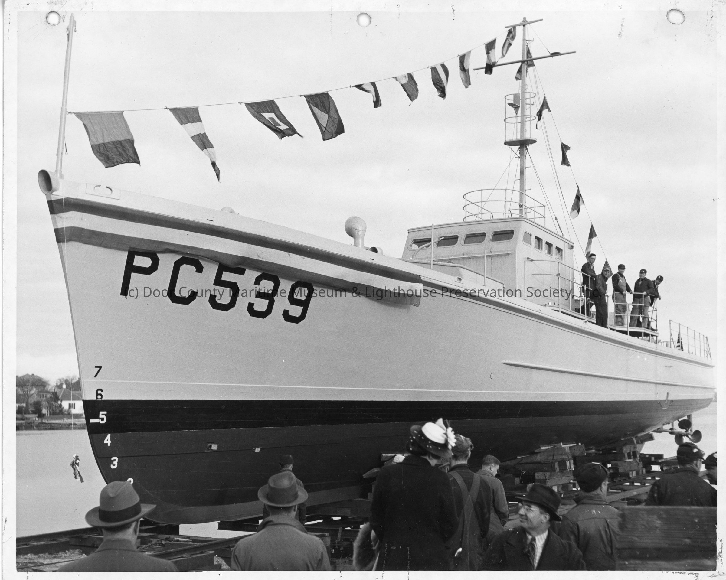 PC-539 post-christening at Peterson Boat Works April 7, 1942
