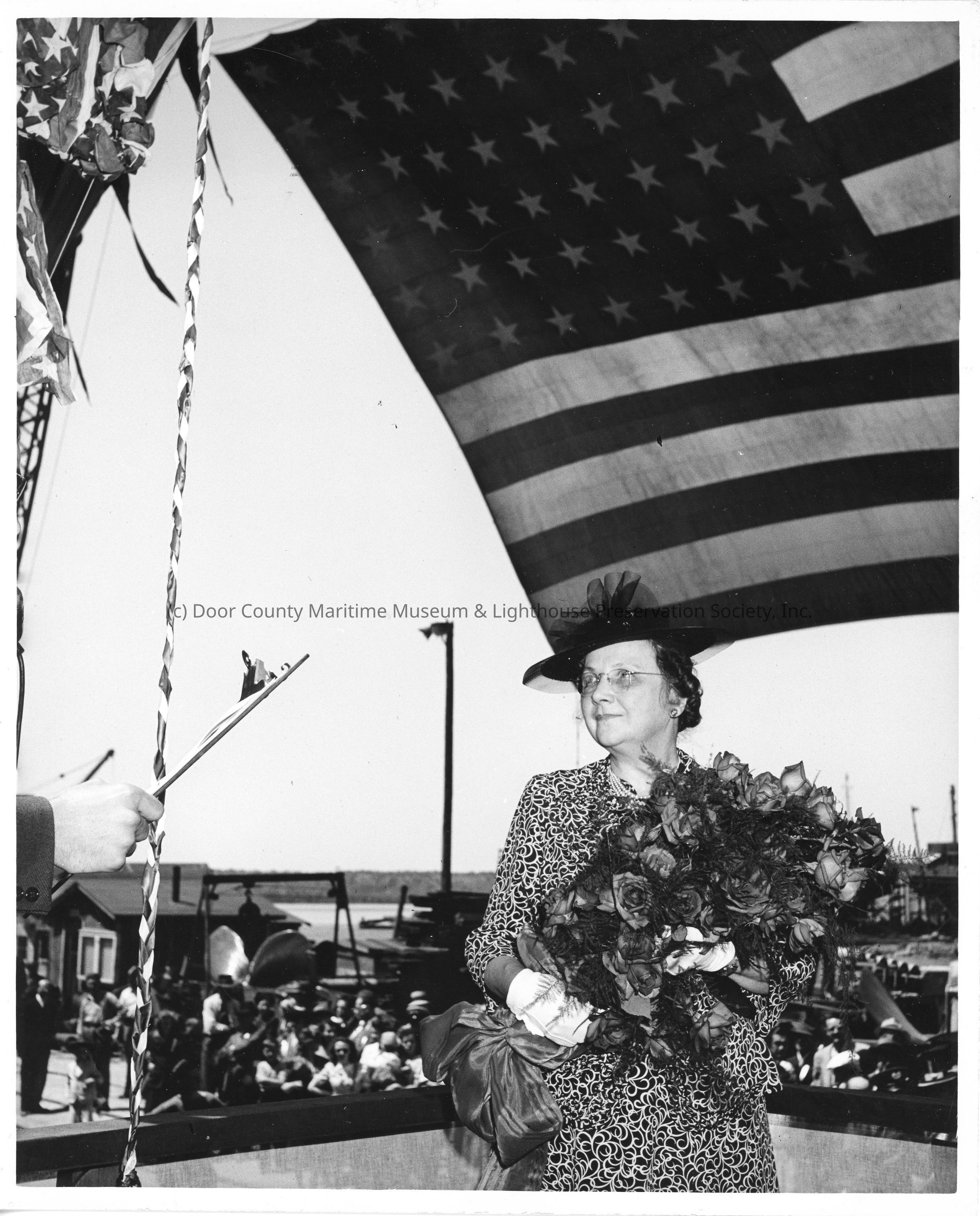 PC-825 ship sponsor Mrs. Zeidler holding flowers pre-christeningEntry/Object ID