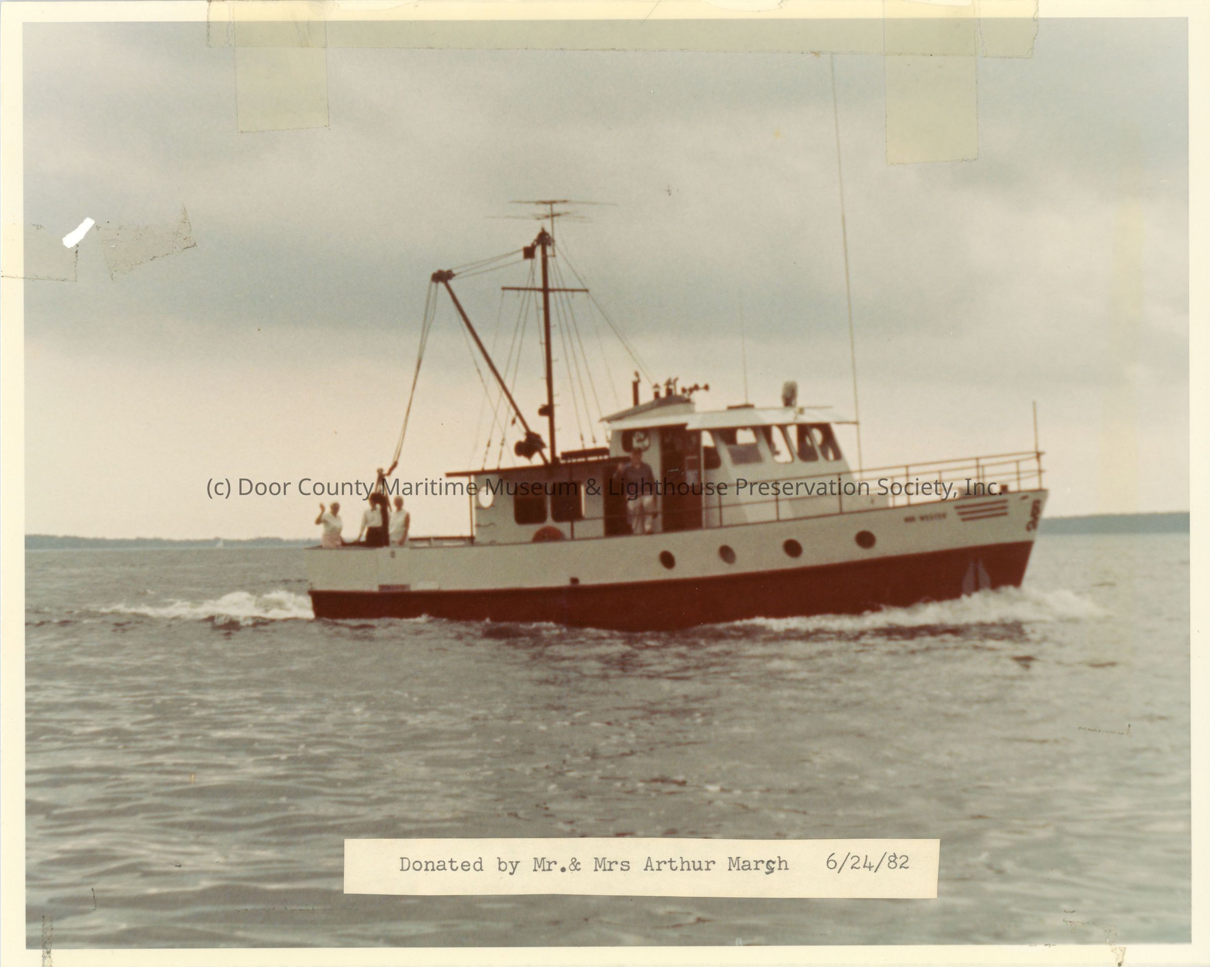 People on deck of Nor Wester waving 1982