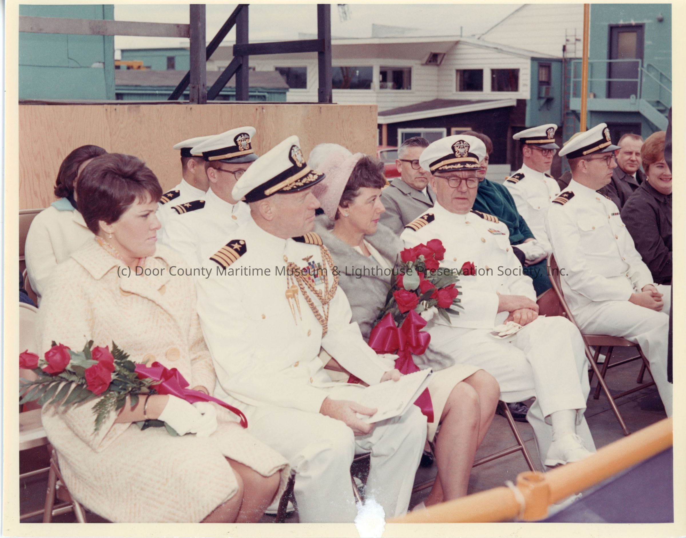 People sitting in sponsor box PG-99 USS Beacon christening