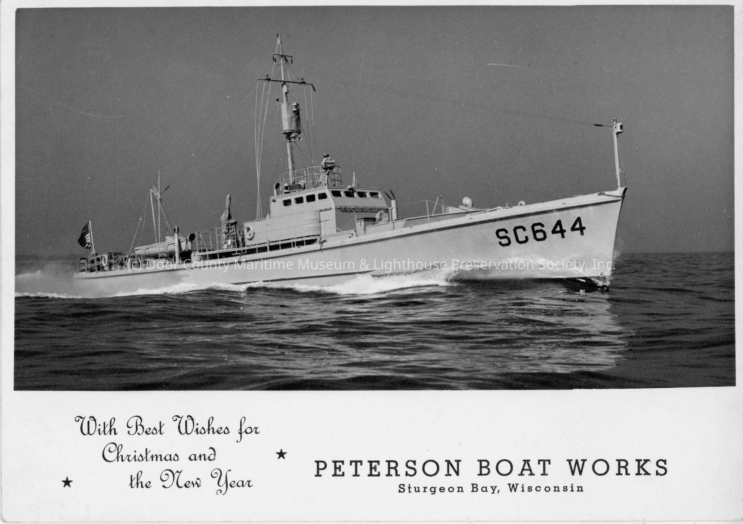 Peterson Boat Works Christmas Card SC-644 underway 1942