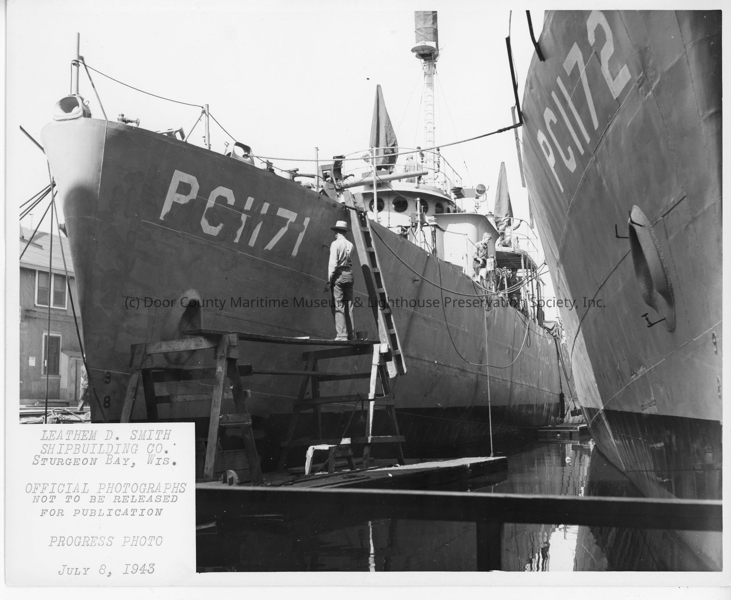 PF-69 USS Davenport at Leathem D. Smith Shipbuilding Co. progress photo July 8, 1943