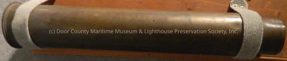 Shell CASING; brass-colored metal tube; 90mm shell casing shot from PG 99 "Beacon"; black printing on side "Assembled with Electric Primer."Location