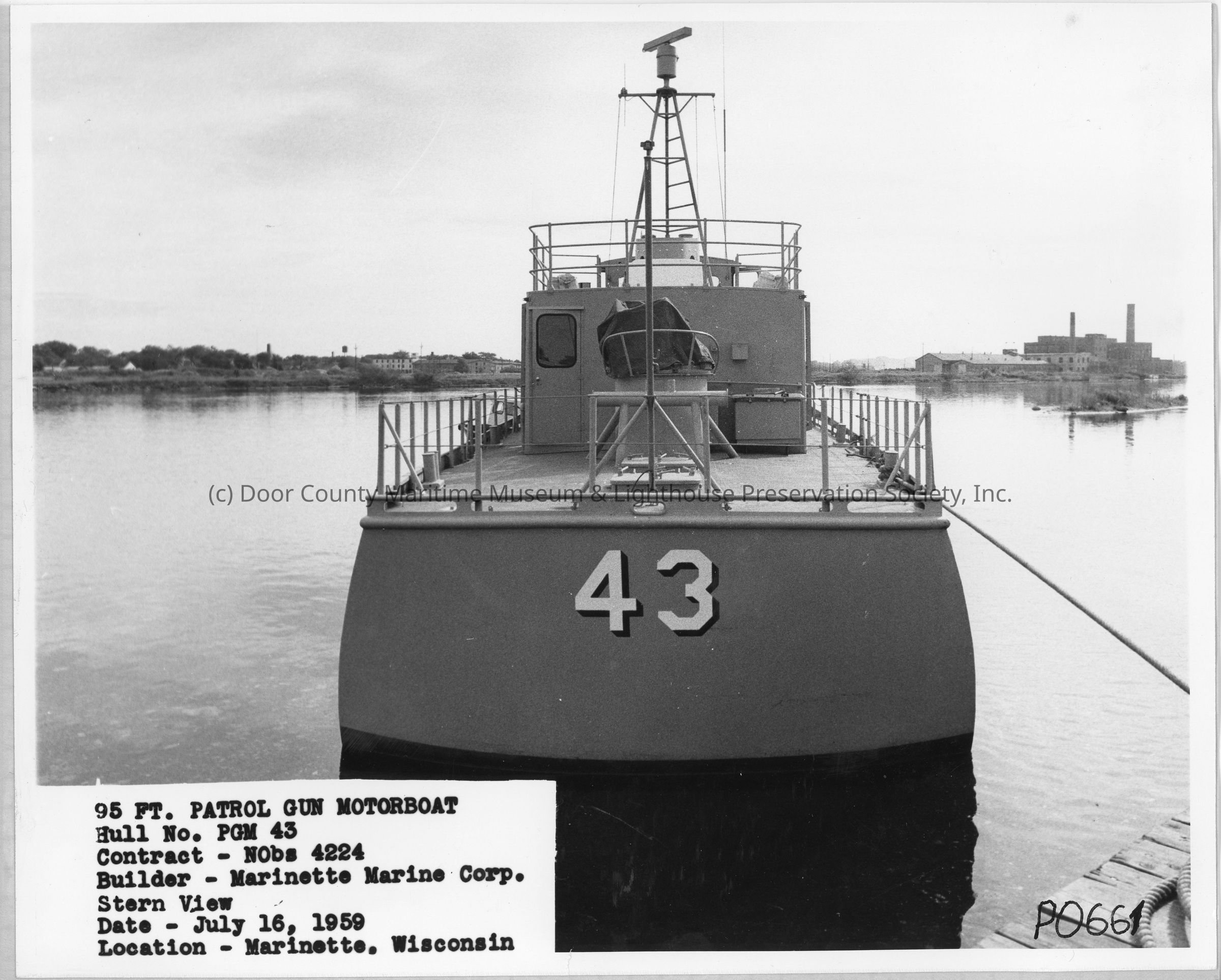 PGM-43 stern view docked in Marinette, Wisconsin, on July 16, 1959