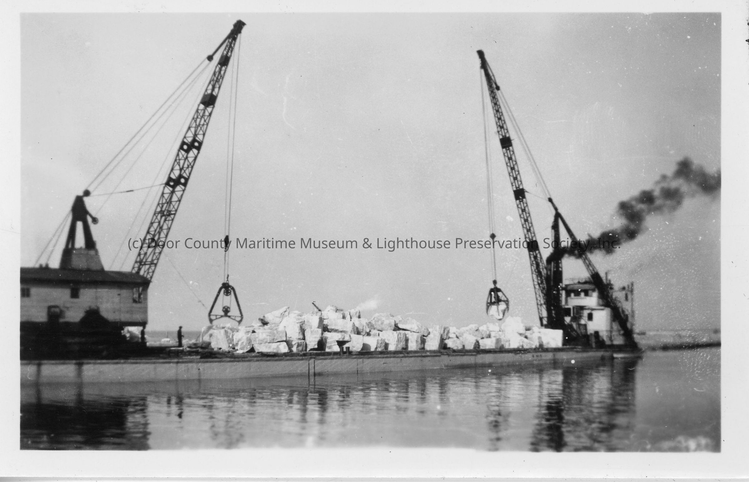 Pile of limestone on barge Transport with two cranesEntry/Object ID