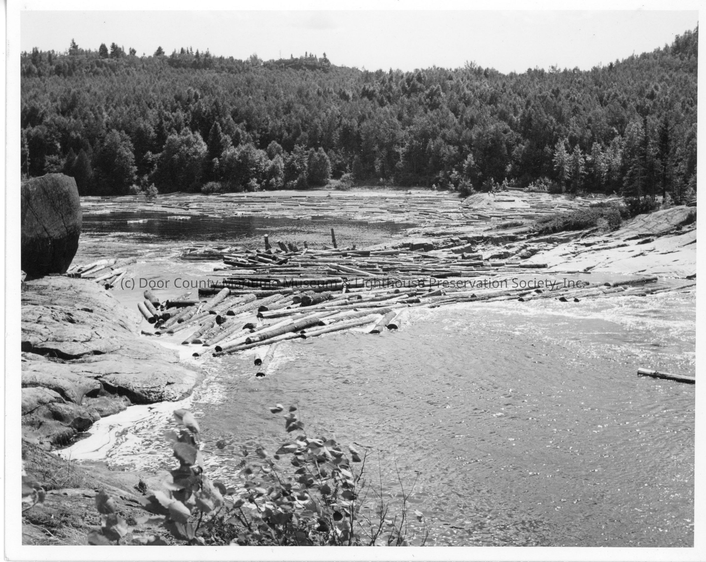 Pile of logs on a river 1944