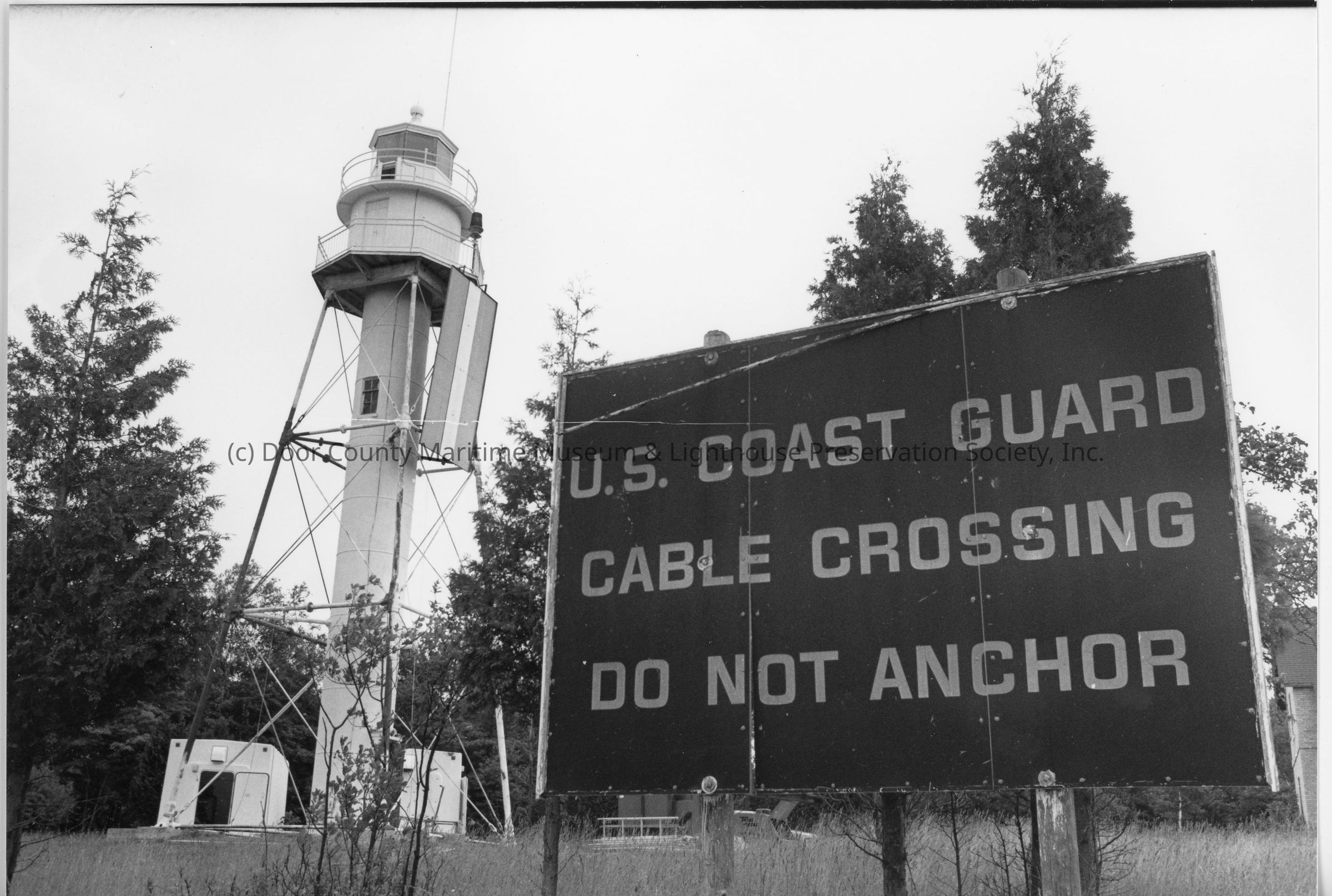 Plum Island tower and US Coast Guard Cable Crossing Sign