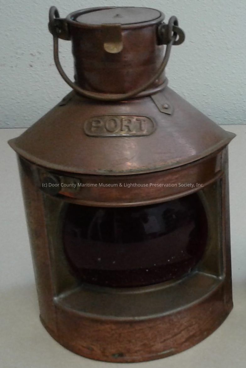 Running light with "port" on top. Copper color frame with red plastic lens