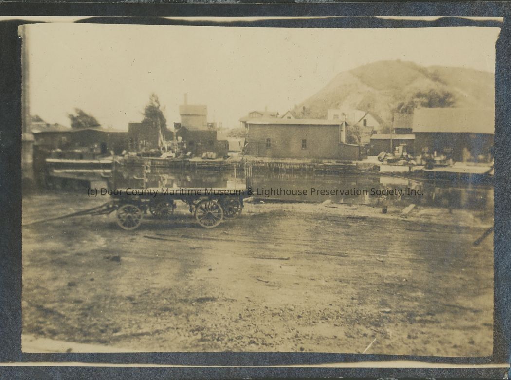 Freight wagons on the riverfront of Port Washington, Wisconsin.