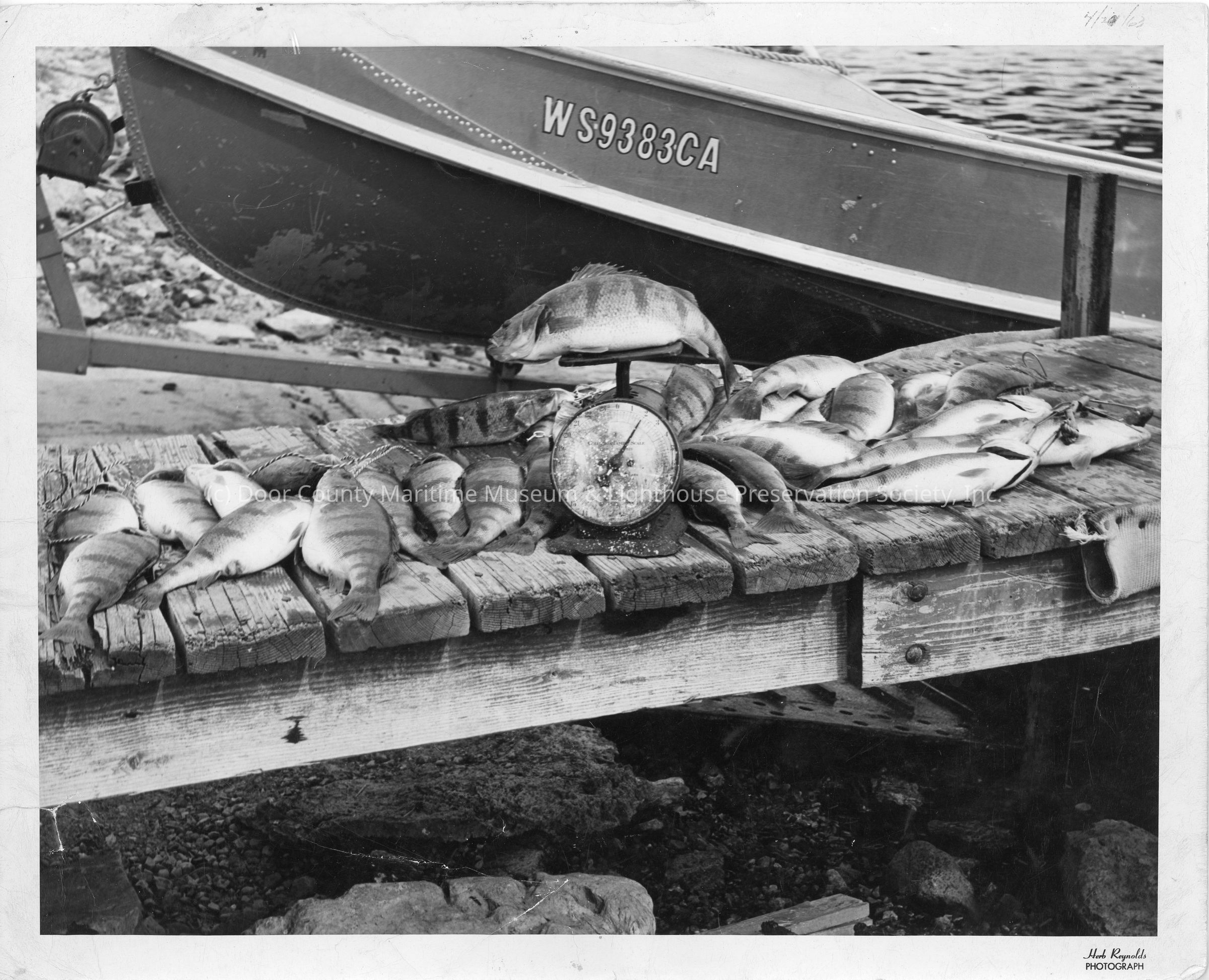 Portion of boat WS9383CA with 39 perch on dock with small scale April 21, 1963Entry/Object ID