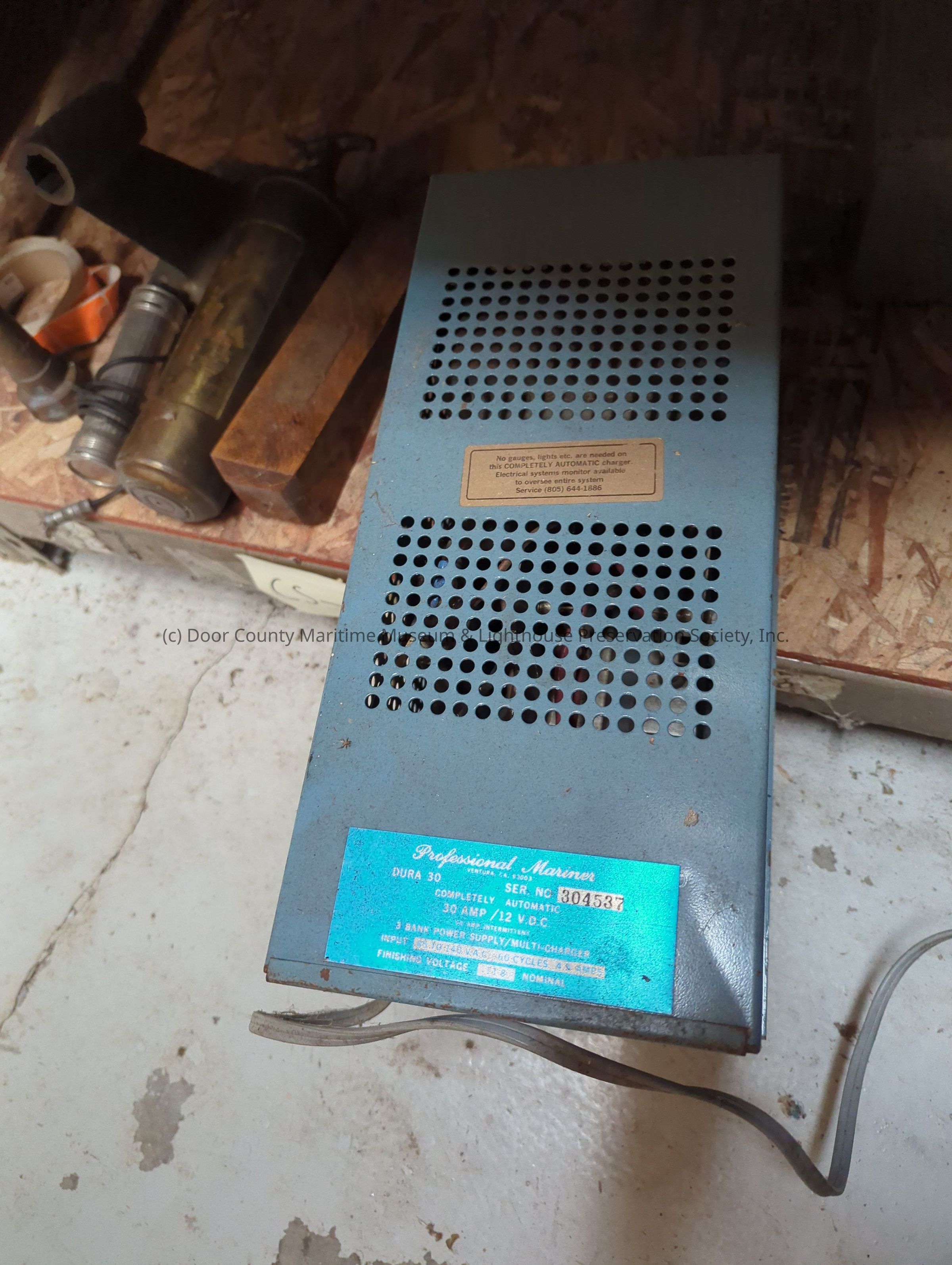 Medium Blue. Two groups of vent holes on three sides. Gold with black text service label and blue ID label with serial number. 30 AMP 12 Volts