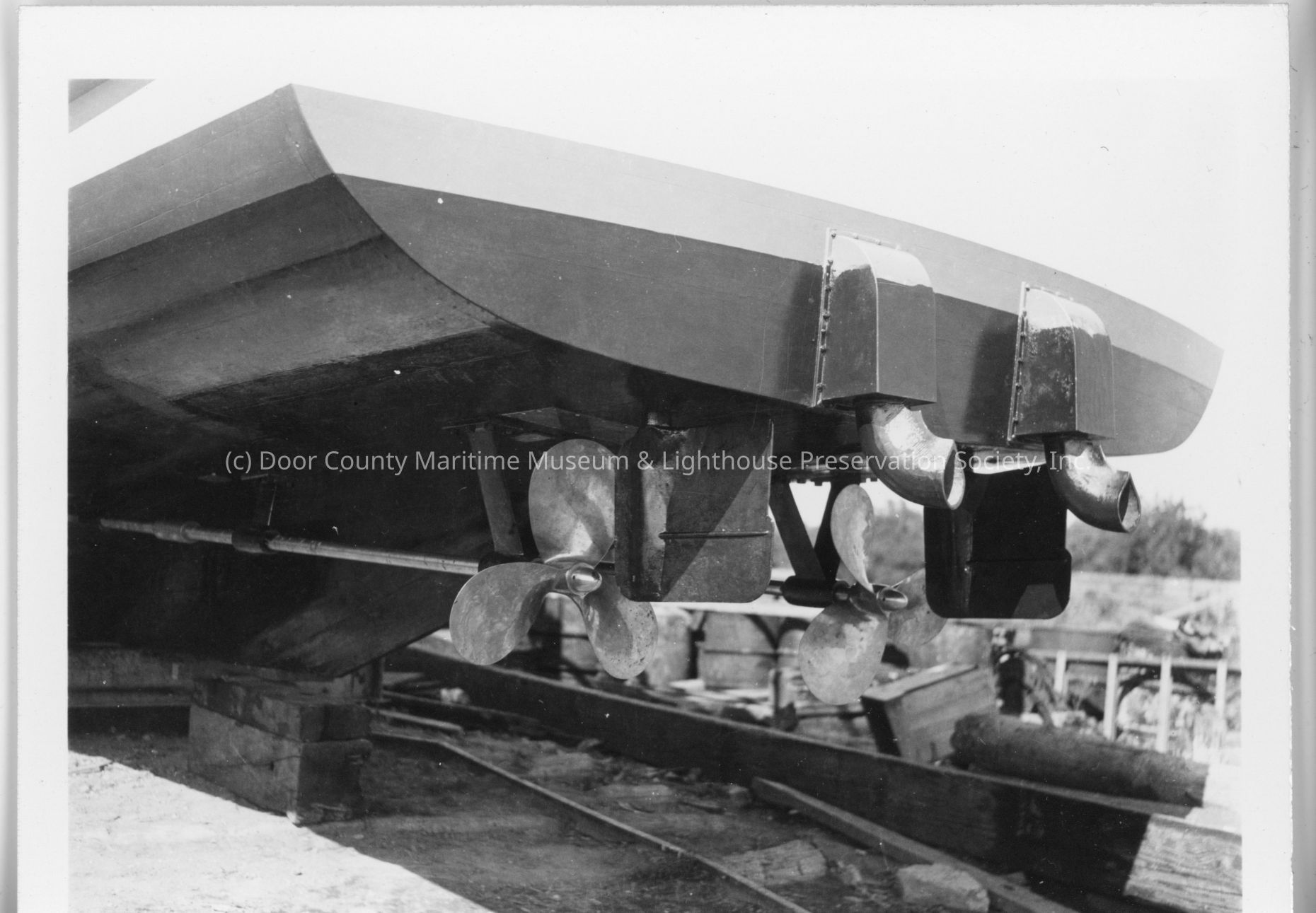 Propellors and exhaust of the Hellu on cribbing