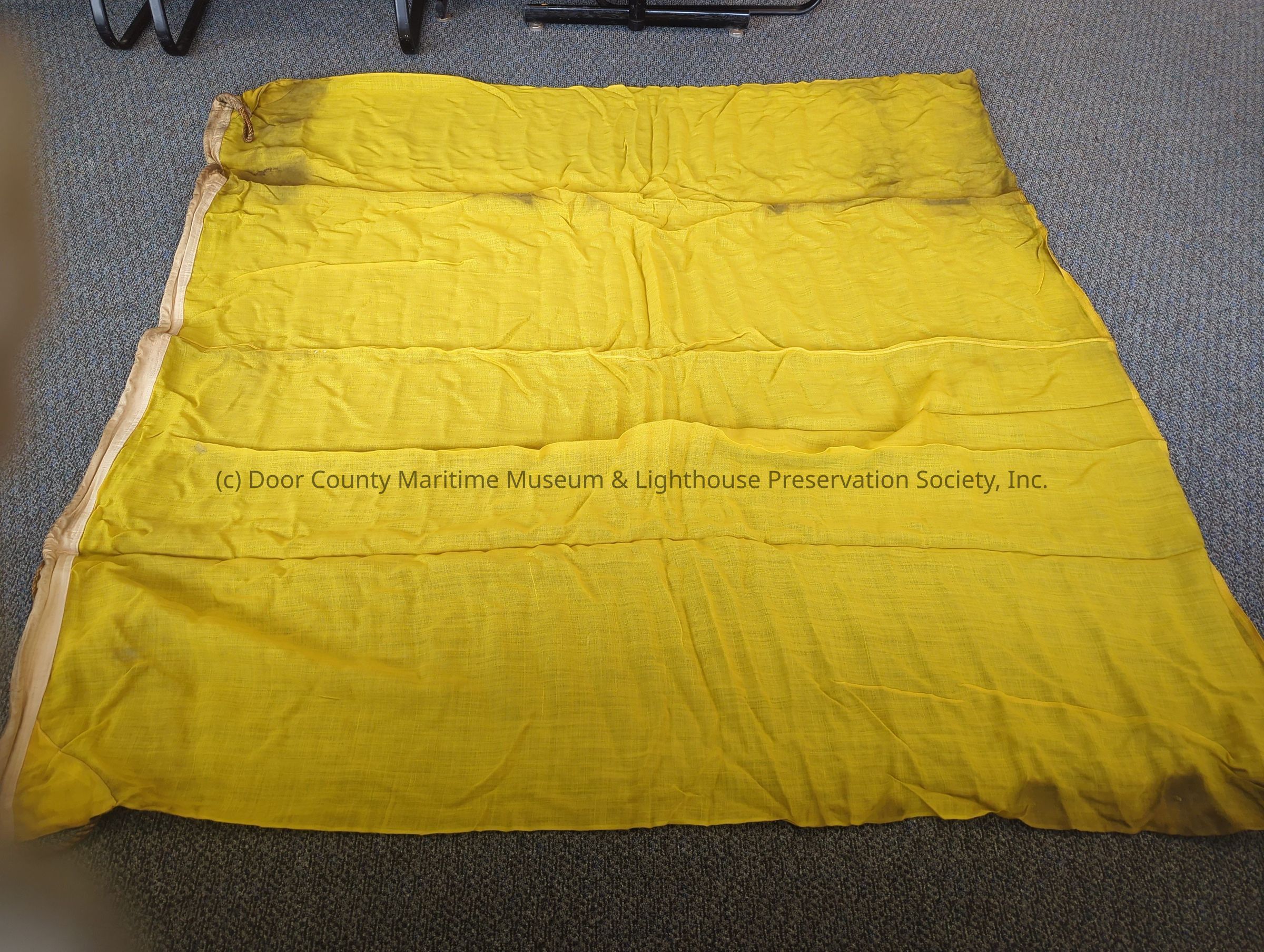 Signal Flag: "Q"; square, solid yellow; dirty.