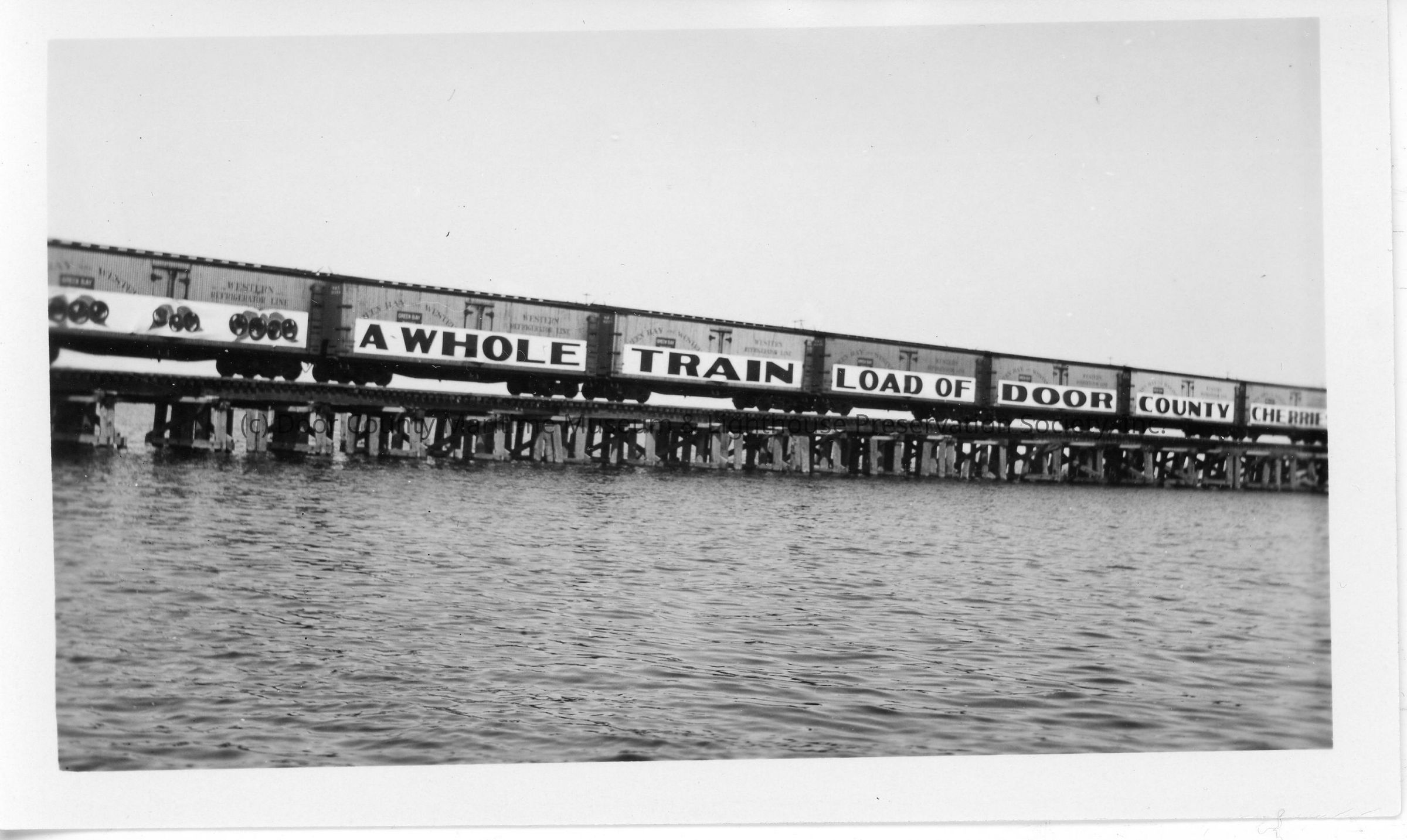 Railroad cars on Leathem and Smith bridge trestle