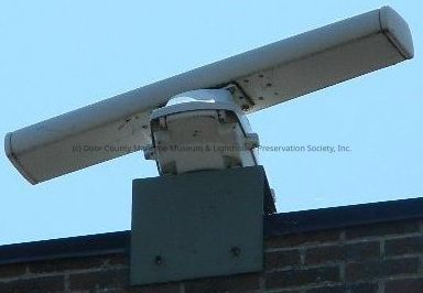 Raytheon radar scanner; (with power and control cables); type M88917; serial #LJ22334; overall color/white; rotating antenna component faded yellow tint; Raytheon logo on front surface in black; ID plates (2) black/attached to front of base cover; white power cord attached to base.Location