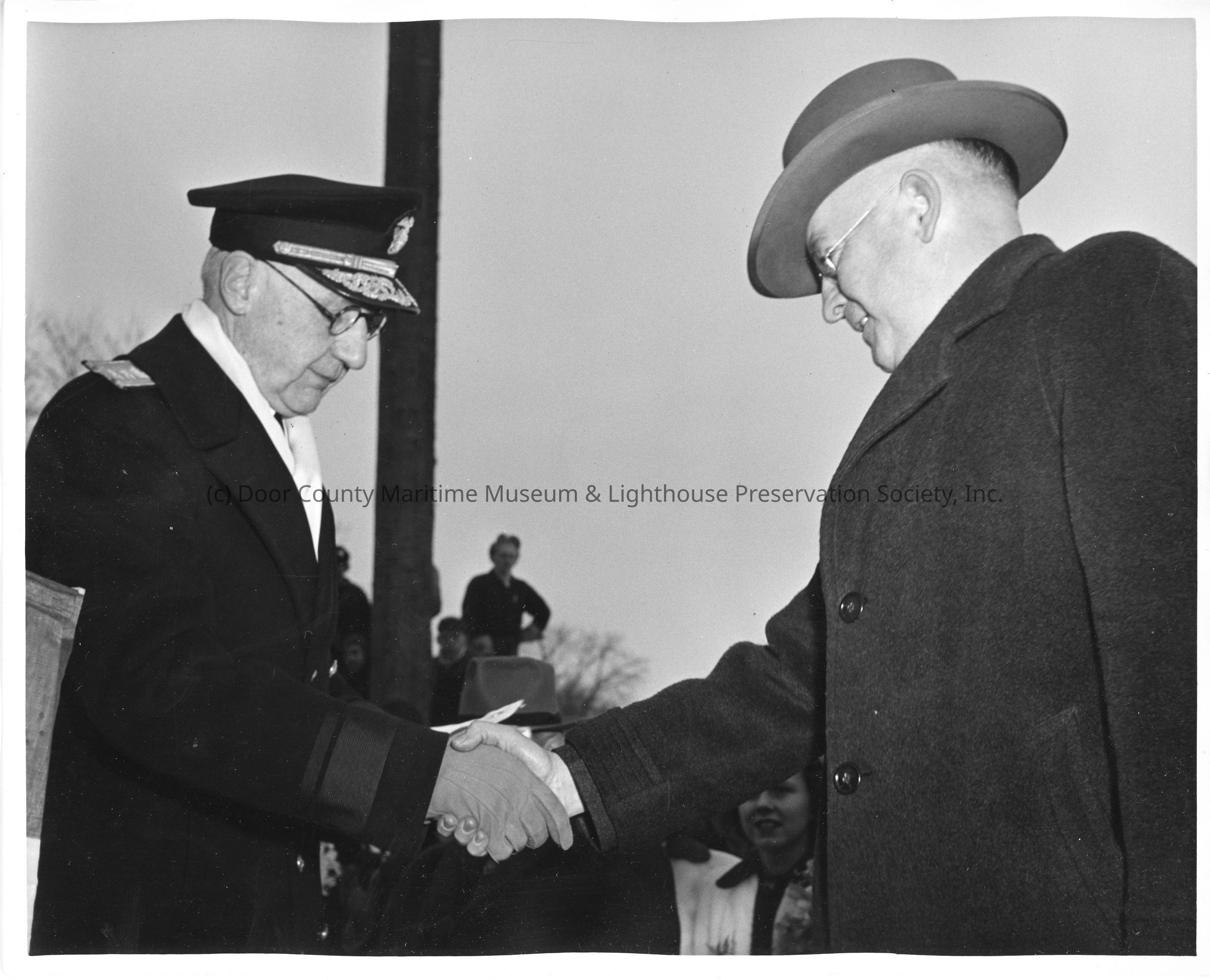 Rear Admiral William C. Watts shaking hands with L.D. SmithEntry/Object ID