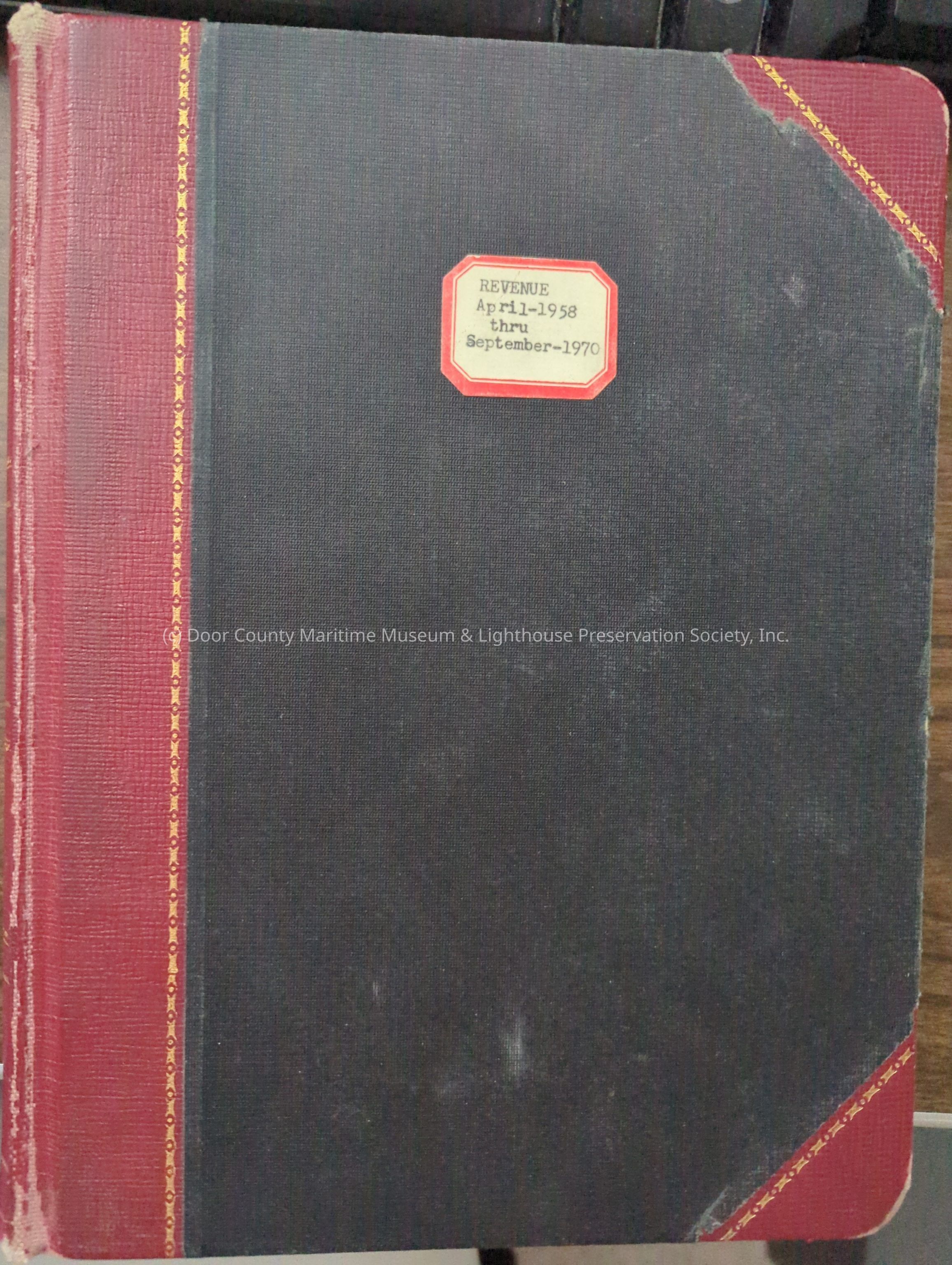 Black hard cover ledger with red spine and corners with golden trimLocation