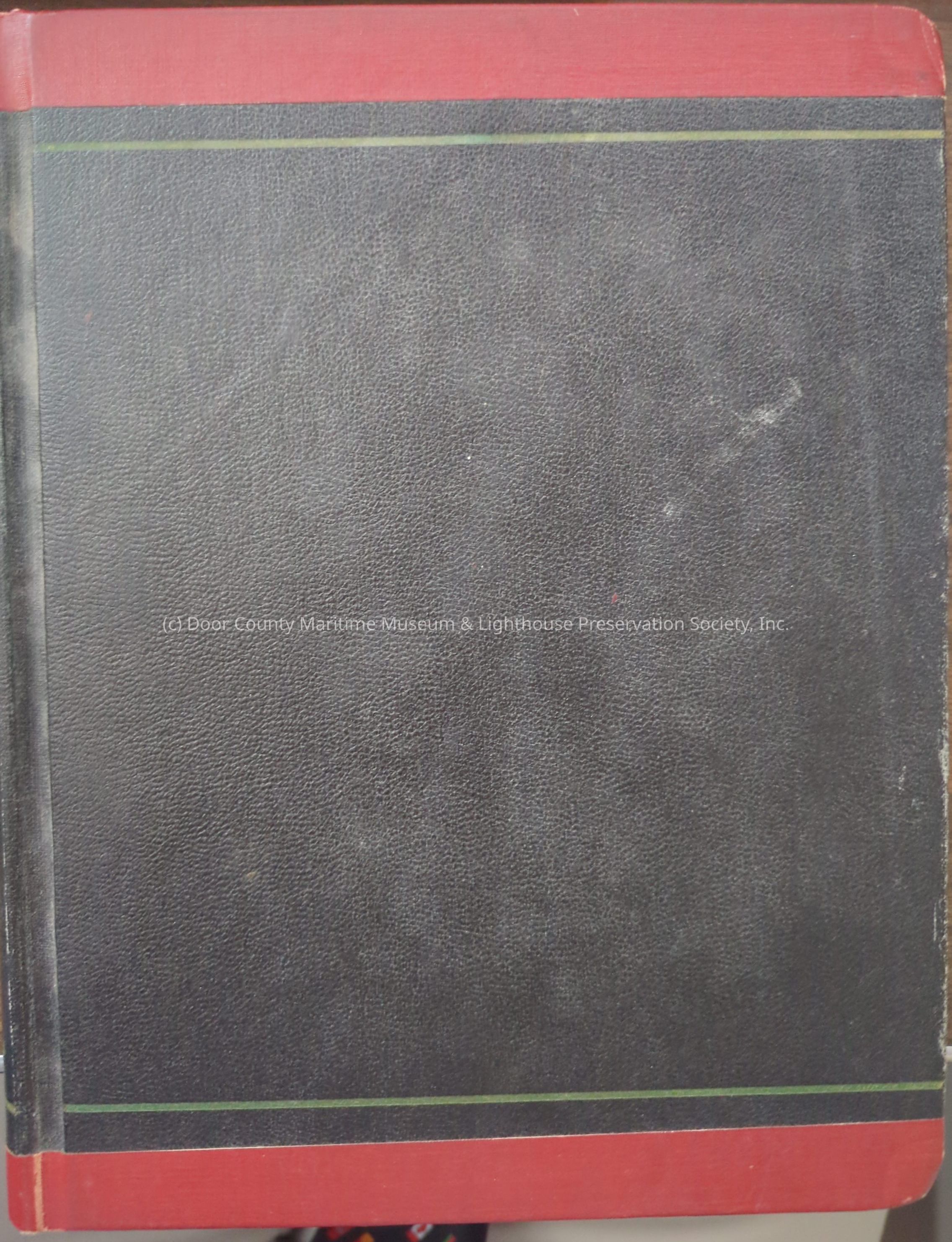 Black ledger with dark red trim on top and bottom