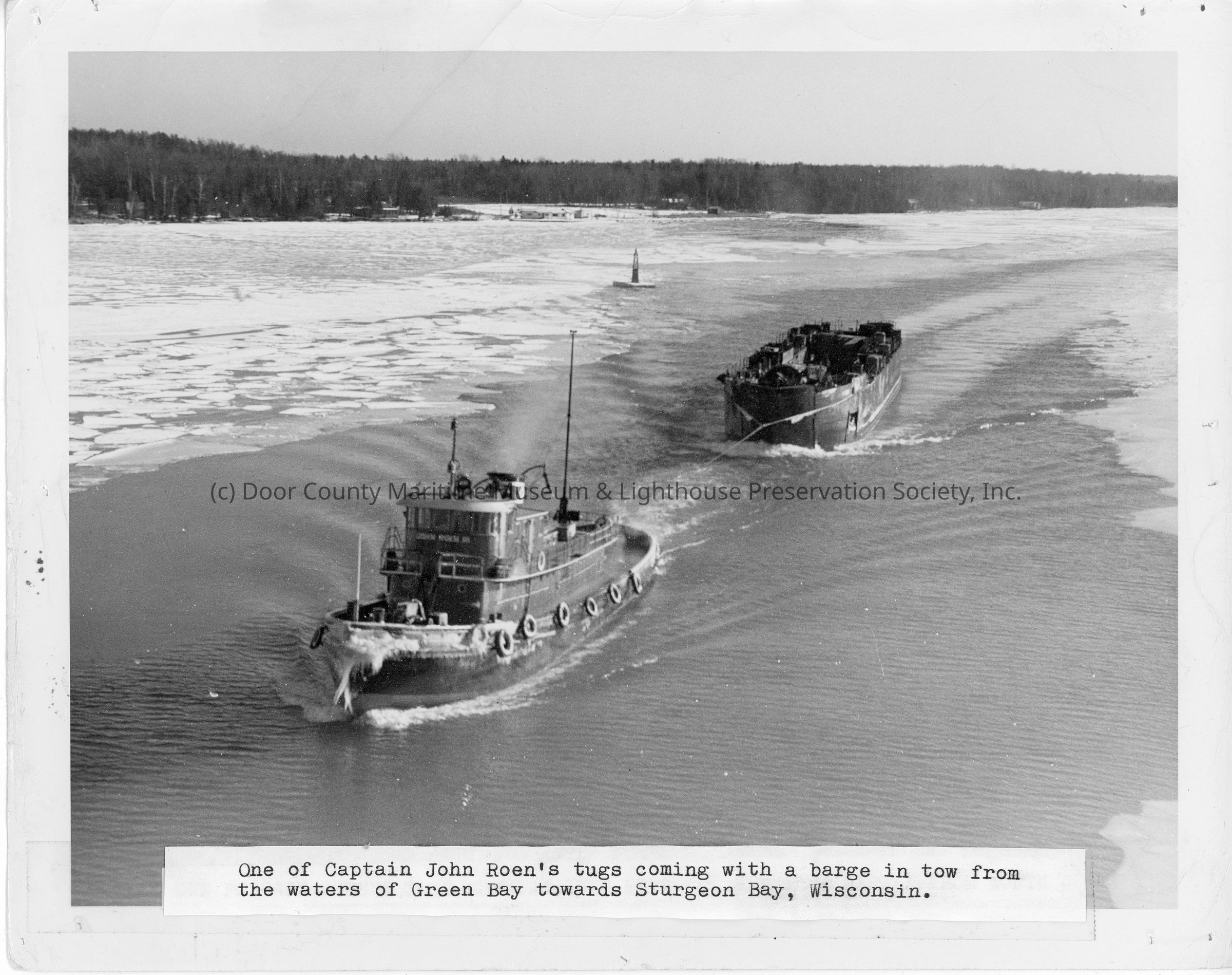 Roen Steamship Co. Tug with barge in tow in Green Bay towards Sturgeon BayEntry/Object ID