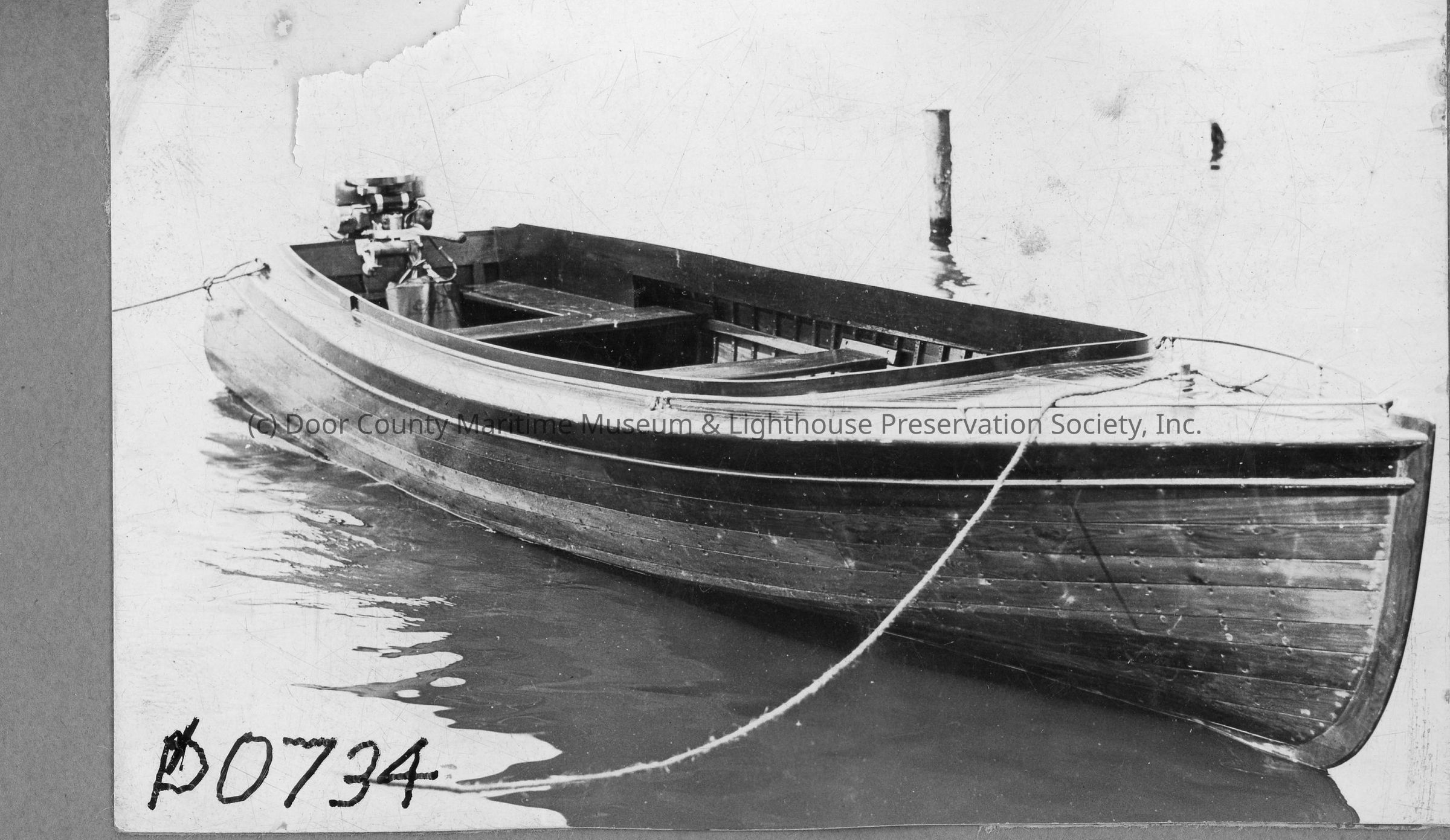 Runabout with outboard motor docked