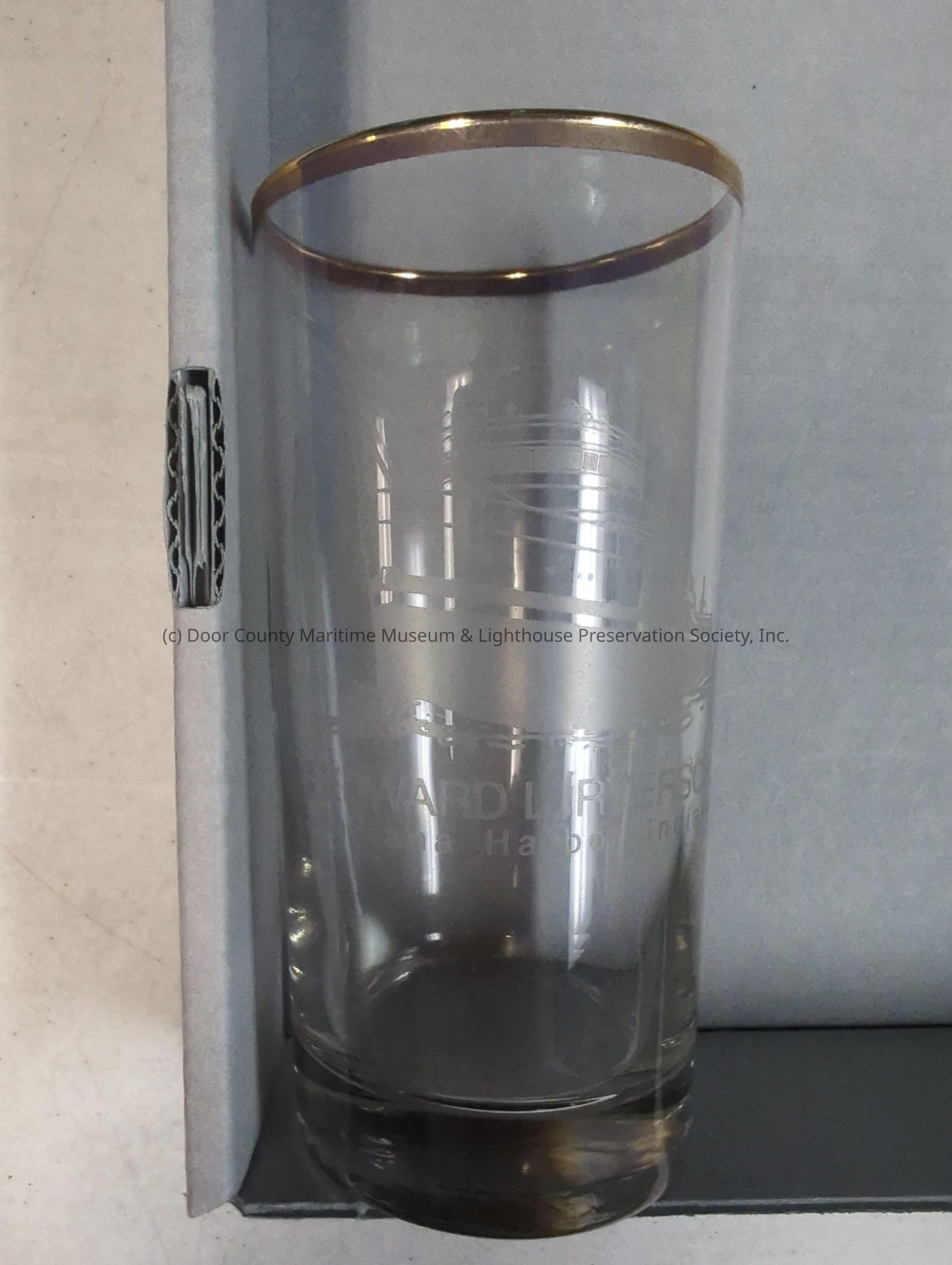 Drinking glass with SS Edward L. Ryerson etched on front with gilded edgingLocation