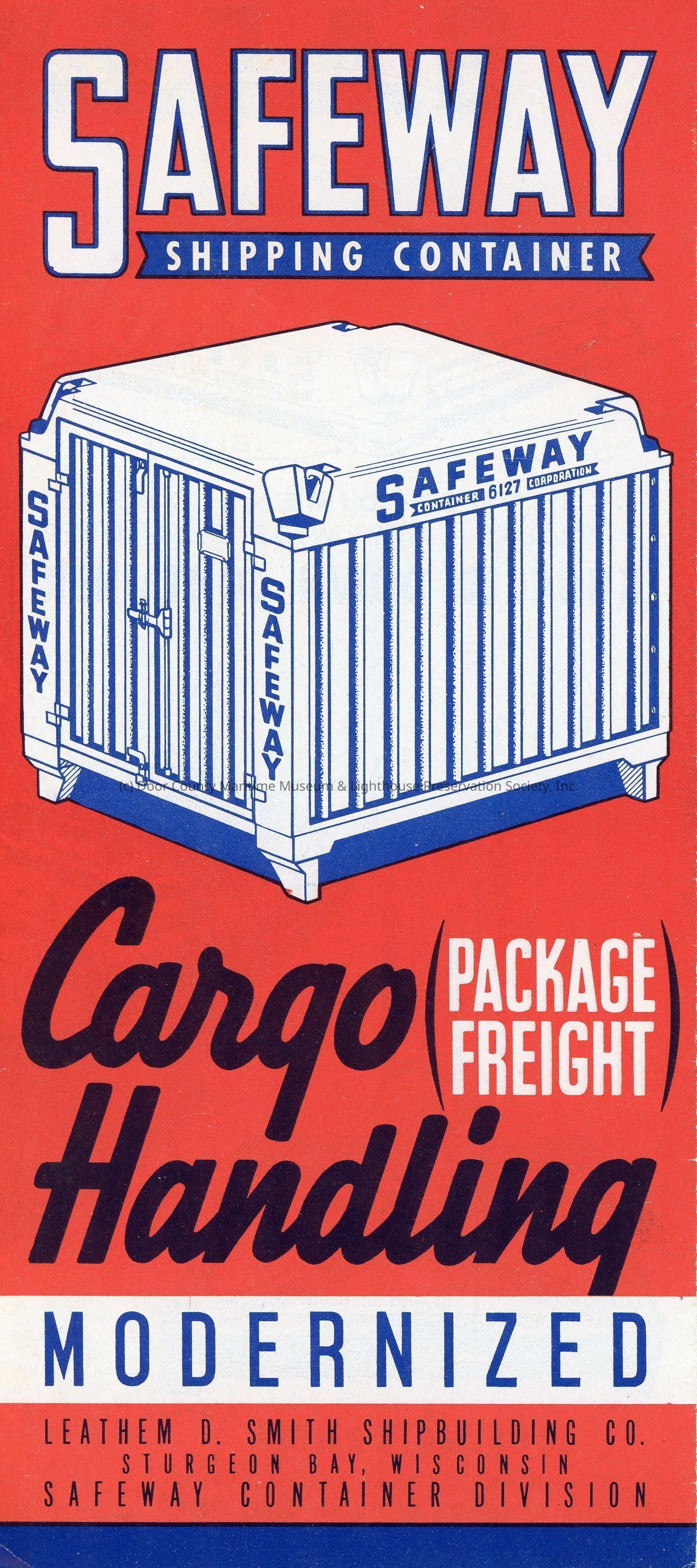 Seven copies of a brochure of the Safeway shipping container manufactured by Leathem D. Smith Shipbuilding Co.Location