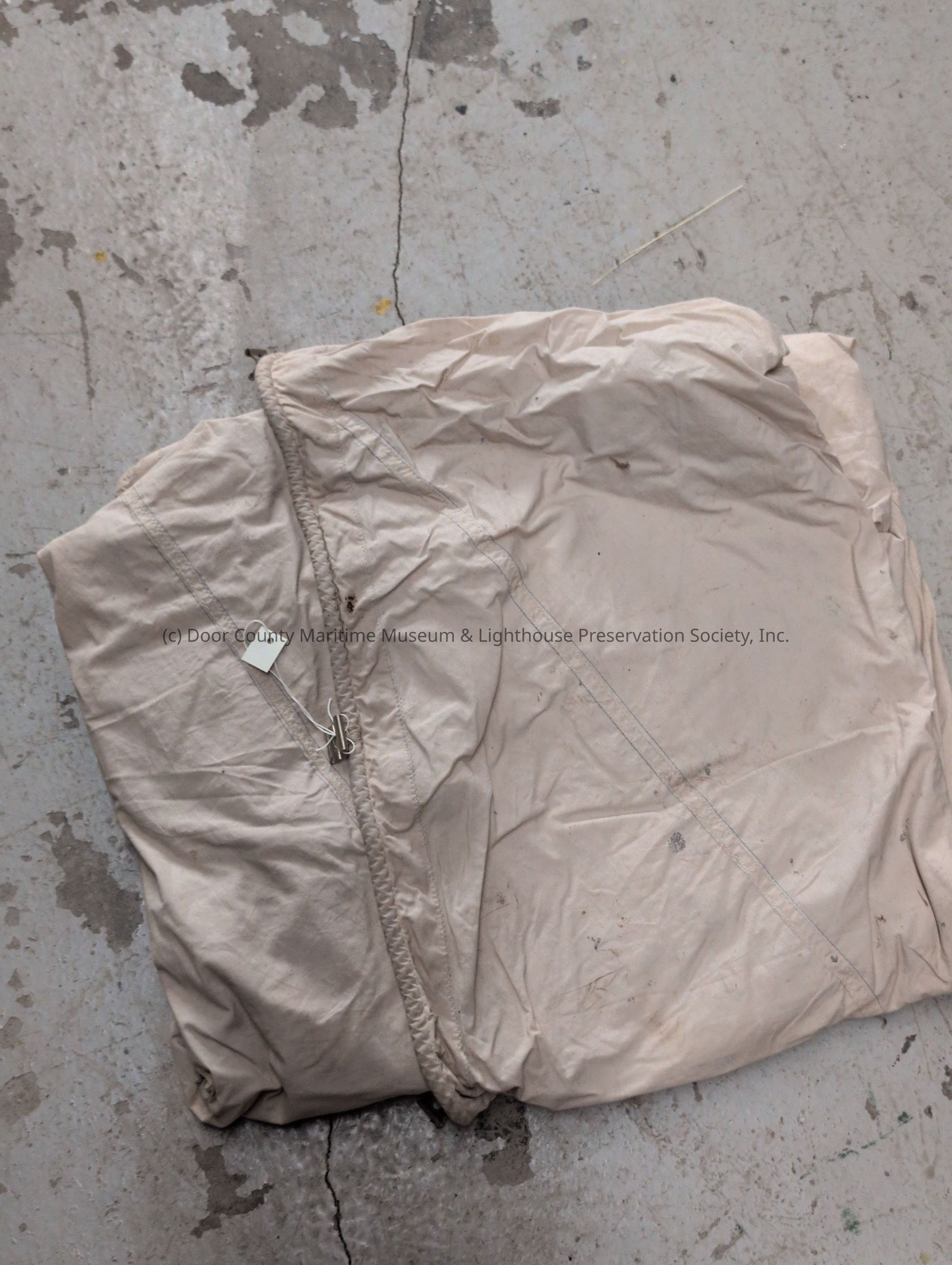 Eggshell colored sail. Qnomets, rope, and guides on one edge