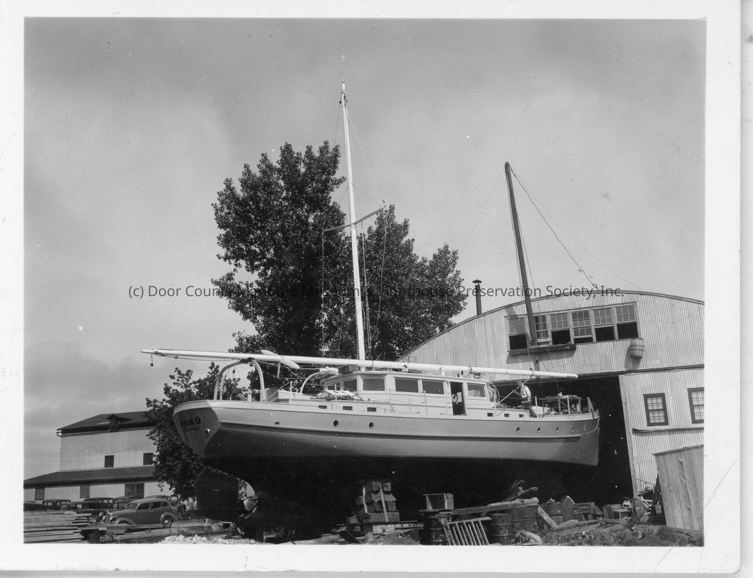 Sailboat Mako at Peterson Boat Works pre-launch 1937