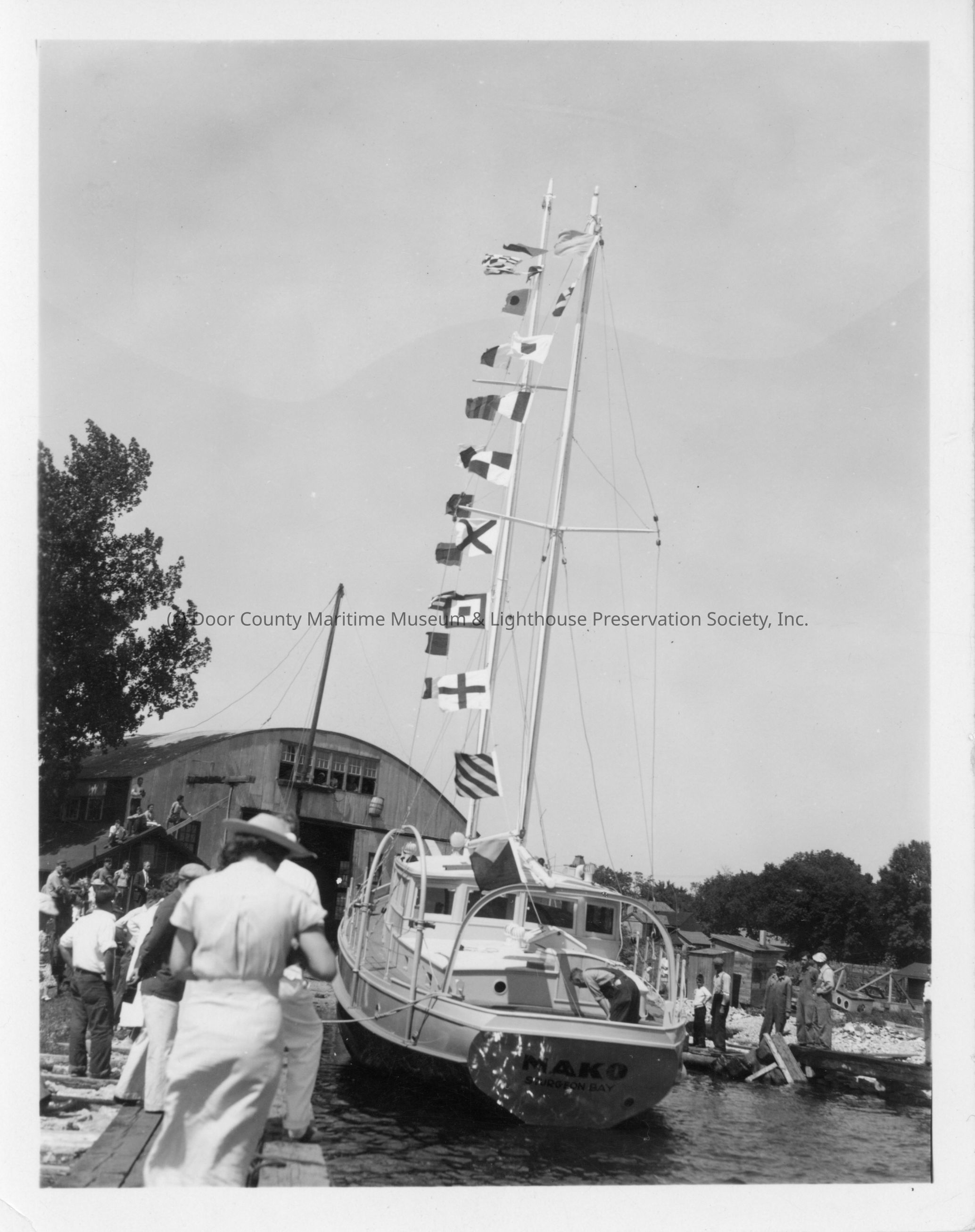Sailboat Mako launching at Peterson Boat Works 1937