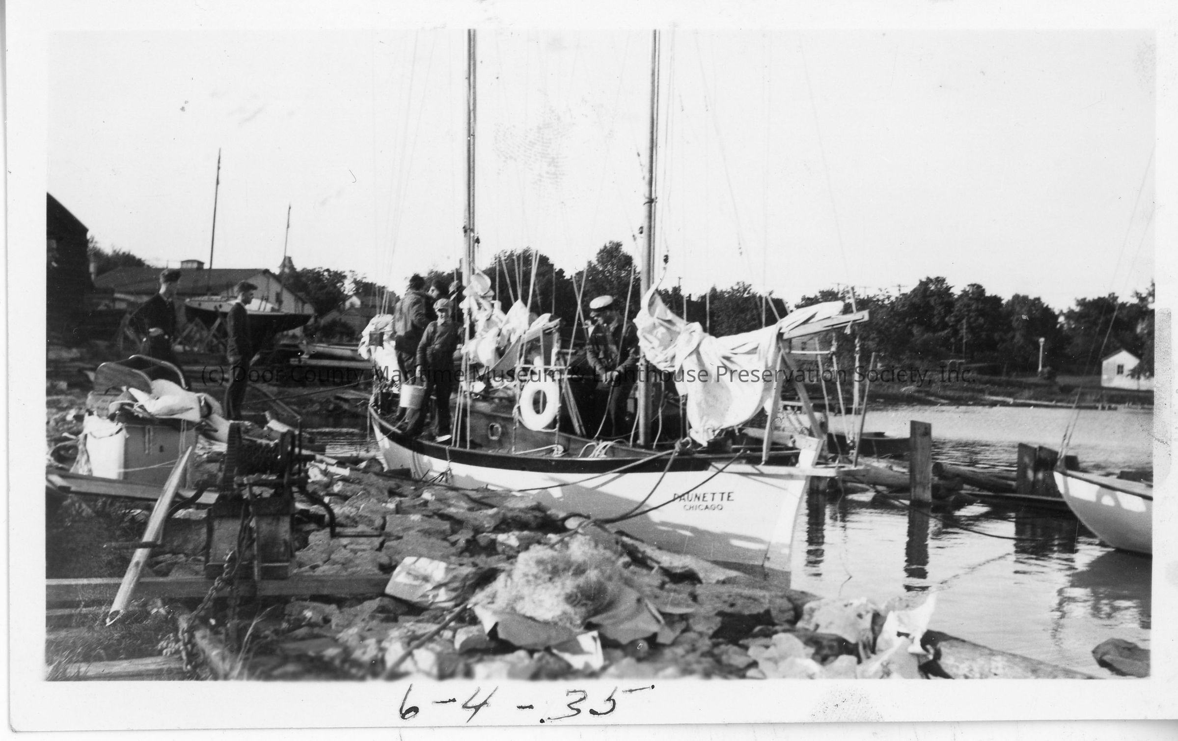 Sailboat Paunette docked at Peterson Boat Works June 4, 1935