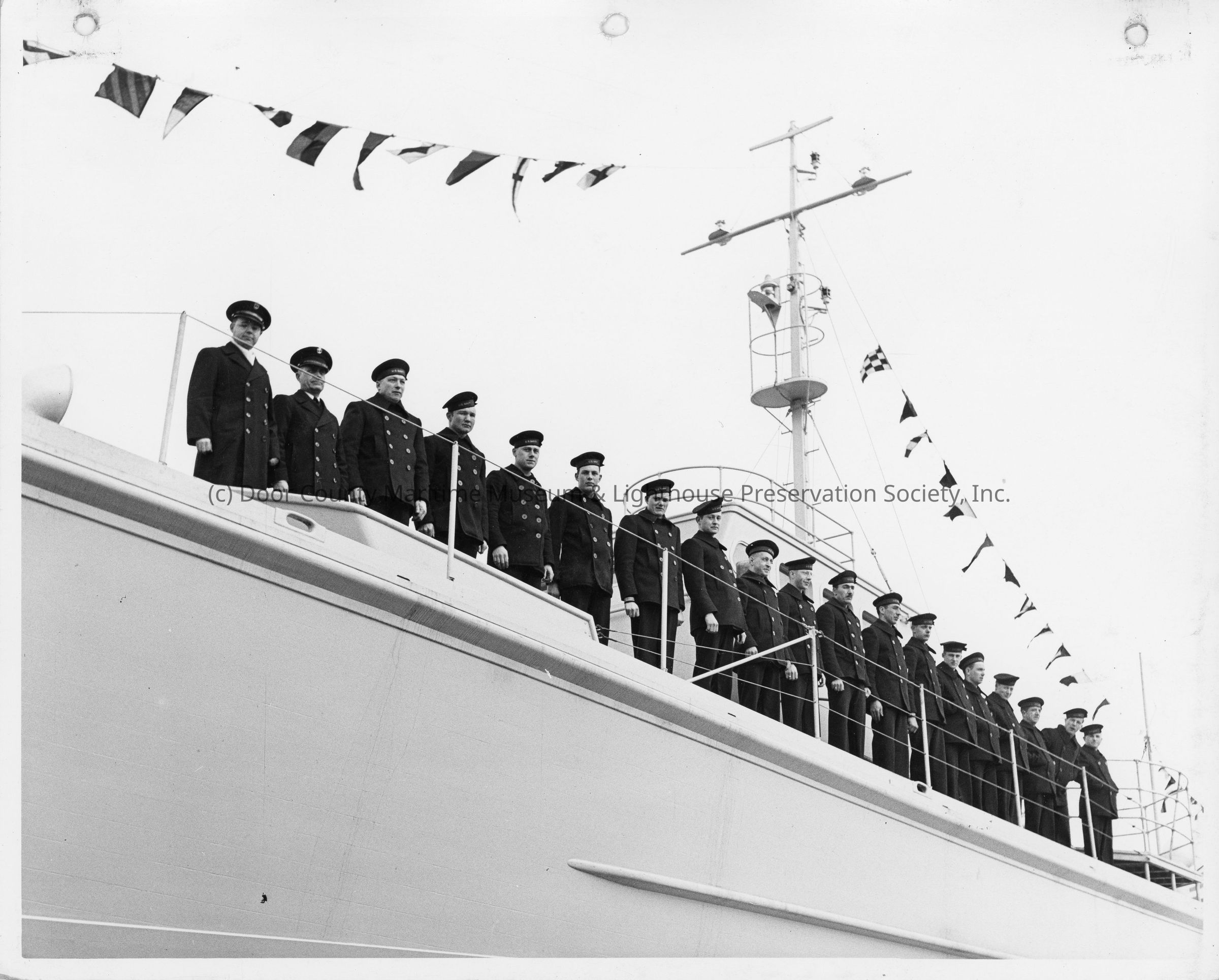 Sailors standing in line on deck of PC-536 at Peterson Boat Works March 5, 1942