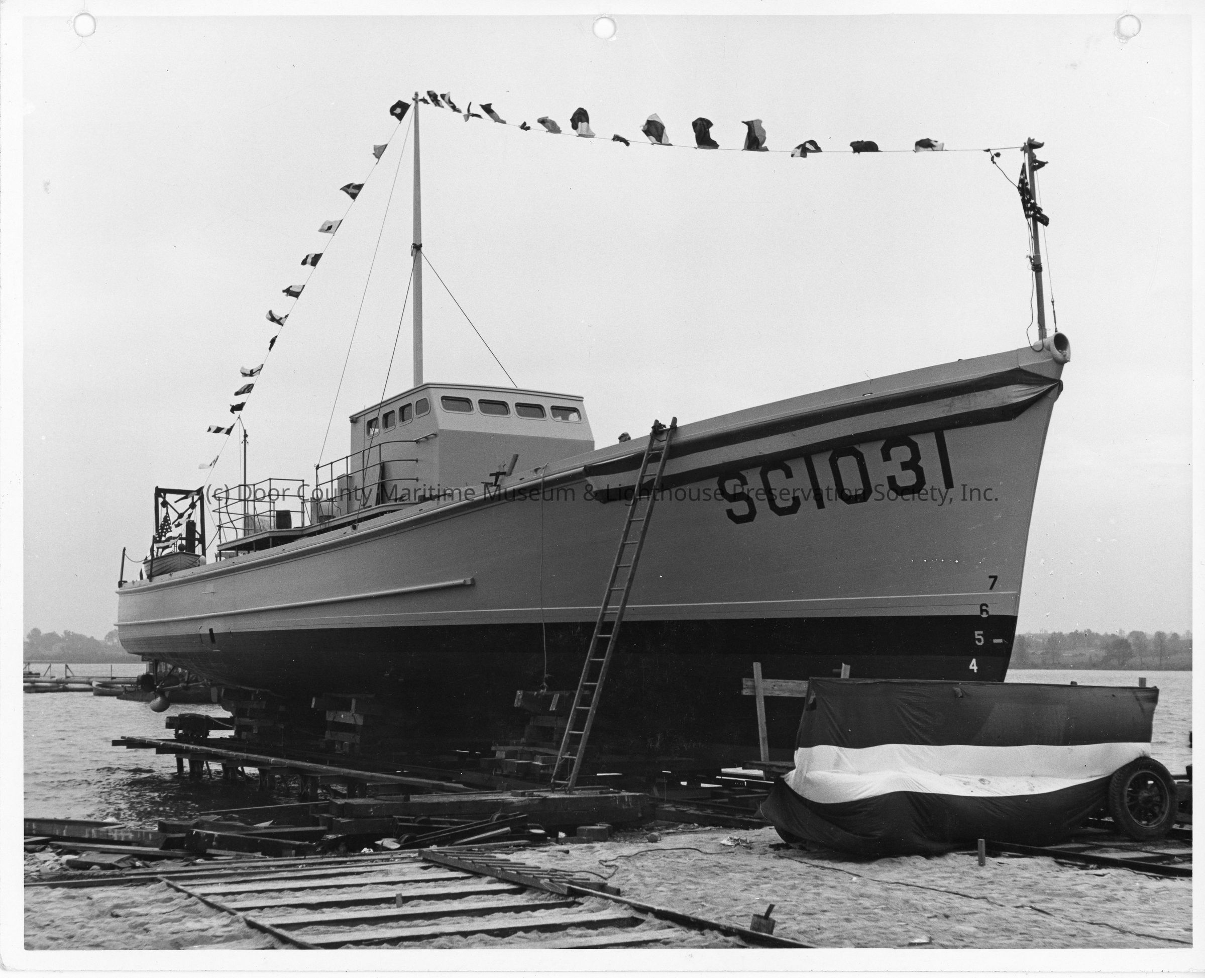 SC-1031 in skids at Peterson Boat Works pre-launch October 3, 1942