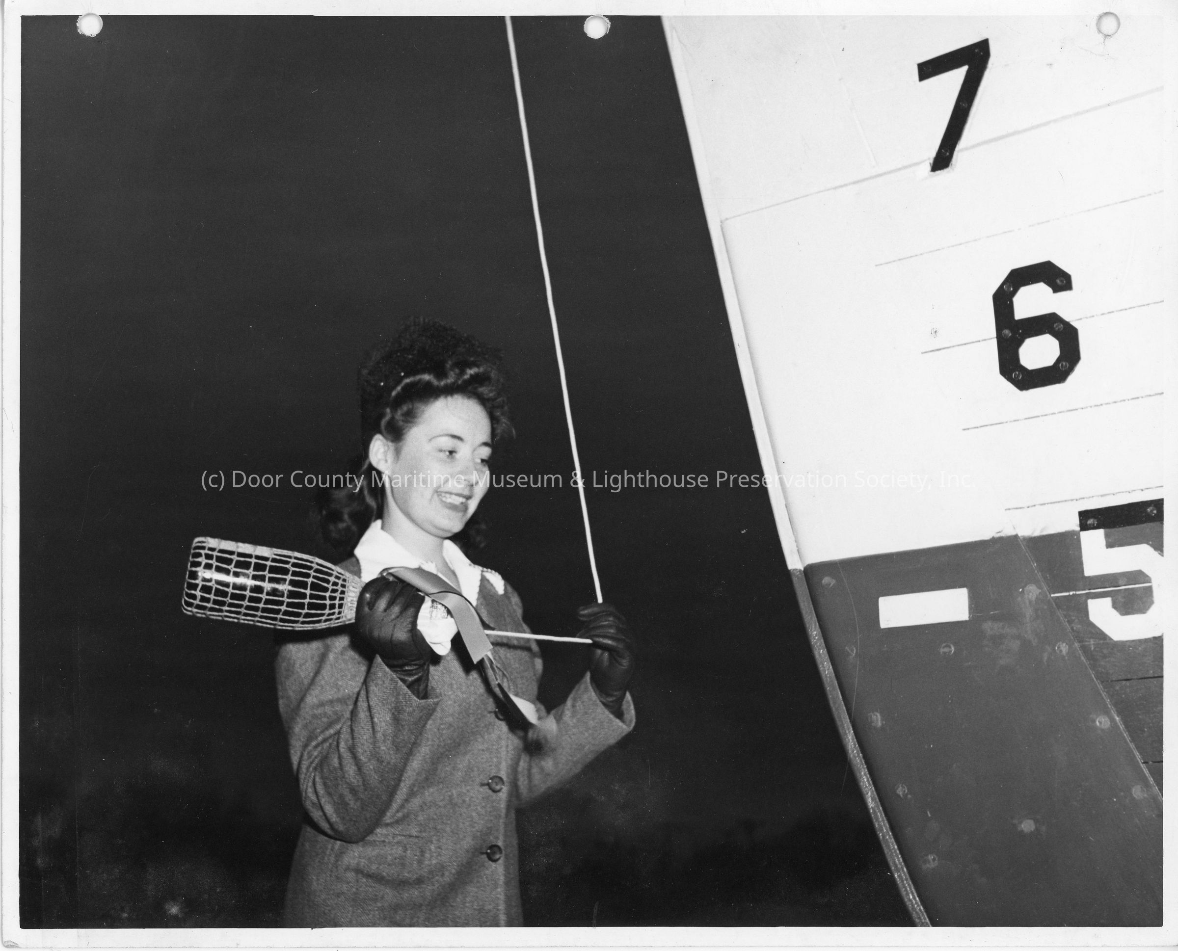 SC-1033 ship sponsor about to christen ship at Peterson Boat Works November 5, 1942Entry/Object ID